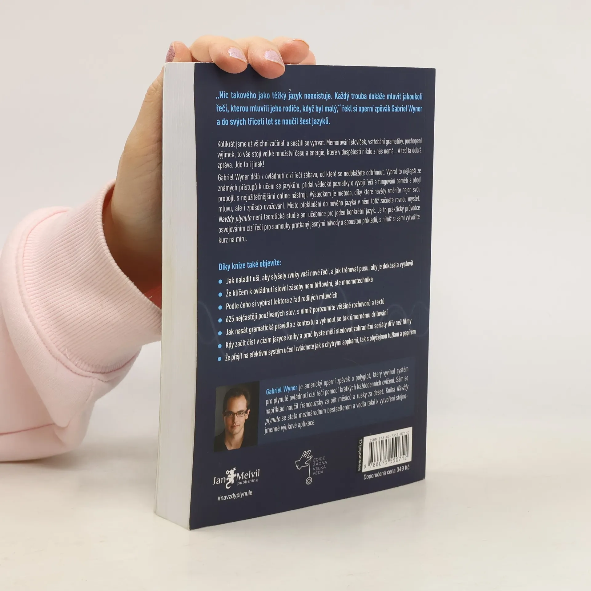 Vzdali jste učení se cizích jazyků? Nemáte čas a ještě k tomu vás úmorná gramatická cvičení nudí? A když už do hlavy něco dostanete, stejně to zase brzy zapomenete? Navždy plynule vaši skepsi vyléčí! Ukáže vám, jak se cizí řeč naučit efektivně, rychle, zábavně a natrvalo. Záchrana, že? Operní pěvec a polyglot Gabriel Wyner není pouhým teoretikem – již ve třiceti letech mluvil plynně šesti jazyky, které se zvládl naučit sám. A každý z nich navíc ovládl v řádu měsíců. Bohaté zkušenosti pak přetavil do nové učební metody pro samouky, která spočívá v krátkých denních trénincích, propojuje to nejužitečnější ze známých lingvistických přístupů s poznatky o fungování mozku a nezapomíná ani na pomoc zdarma dostupných online nástrojů. Navždy plynule vás naučí, jak naladit uši na nové zvuky, jak donutit ústa ke všem novým akrobaciím a jak si kousek po kousku uložit do dlouhodobé paměti vše: od jednoduchých slovíček až po složitá gramatická pravidla. A buďte bez obav, nuda přitom rozhodně nehrozí. Naopak, zábava je klíčem k úspěchu. Takže tentokrát si hru s cizími jazyky užijete a konečně se naučíte vyhrávat! Enfin! Endlich! ?????! Finally! Finalmente! Végre! Endelig! Nareszcie! În cele din urmă! ...