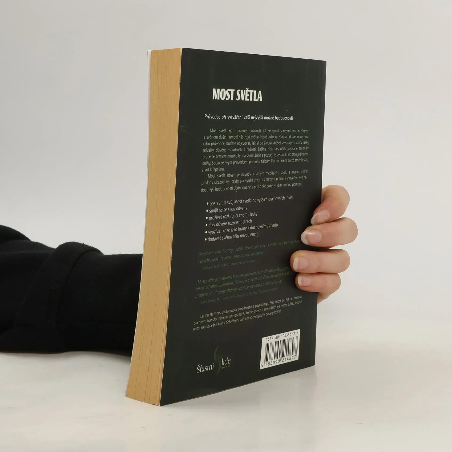 Průvodce při vytváření vaší nejvyšší možné budoucnosti. Most světla nám ukazuje možnosti, jak se spojit s nesmírnou inteligencí a světlem duše. Pomocí nástrojů světla, které autorka získala od svého duchovního průvodce budete objevovat, jak si do života vnášet vyzařující kvality lásky, odvahy, důvěry, moudrosti a radosti. LaUna Huffines učila popsané techniky práce se světlem mnoho let na seminářích a později je sestavila do této jedinečné knihy. Spolu se svým průvodcem pomohli tisícům lidí po celém světě změnit svůj život k lepšímu. Most světla obsahuje návody k silným meditacím spolu s inspirativními příklady ukazujícími cestu, jak využít životní změny a potíže k vytváření své radostnější budoucnosti. Jednoduché a praktické pokyny vám mohou pomoci: - postavit si svůj Most světla do vyšších duchovních rovin - spojit se se silou odvahy - prožívat rozšiřující energii lásky - využívat krize jako brány k duchovnímu životu - dodávat svému tělu novou energii... celý text