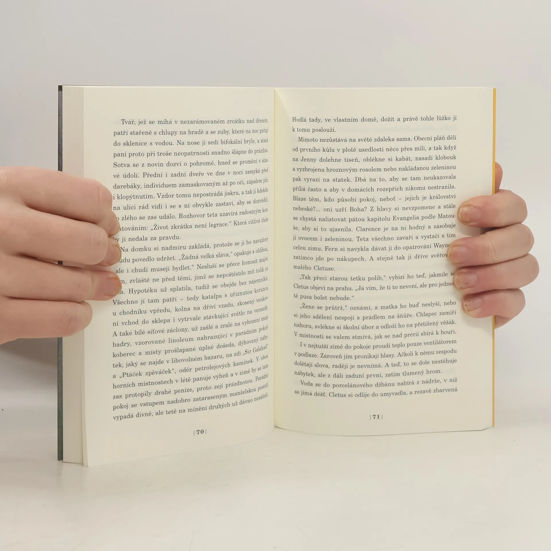 Výstřel z pistole, který na jednom z illinoiských statků naruší ospalou atmosféru zimního rána počátkem dvacátých let minulého století, ukončí nejen život nájemce usedlosti Lloyda Wilsona, jenž se nešťastně zapletl s manželkou svého souseda Smithe, ale i přátelství Smithova syna Cletuse s jeho vrstevníkem, vypravěčem příběhu, jen pozvolna se vyrovnávajícím s nedávnou smrtí vlastní matky. Podrobná rekonstrukce řetězu událostí, do níž se vypravěč pouští z odstupu více než padesáti let, aby se mimo jiné pokusil vyrovnat se svým dávným lidským selháním, je působivým příběhem o vášni a vině i nezapomenutelným portrétem dětství, v němž se - slovy prozaika Michaela Ondaatjeho - autorovi podařilo zachytit "naše nejhlubší smutky, pravdy i lásku - to vše jasným a prostým stylem a mistrovskými tahy štětce".