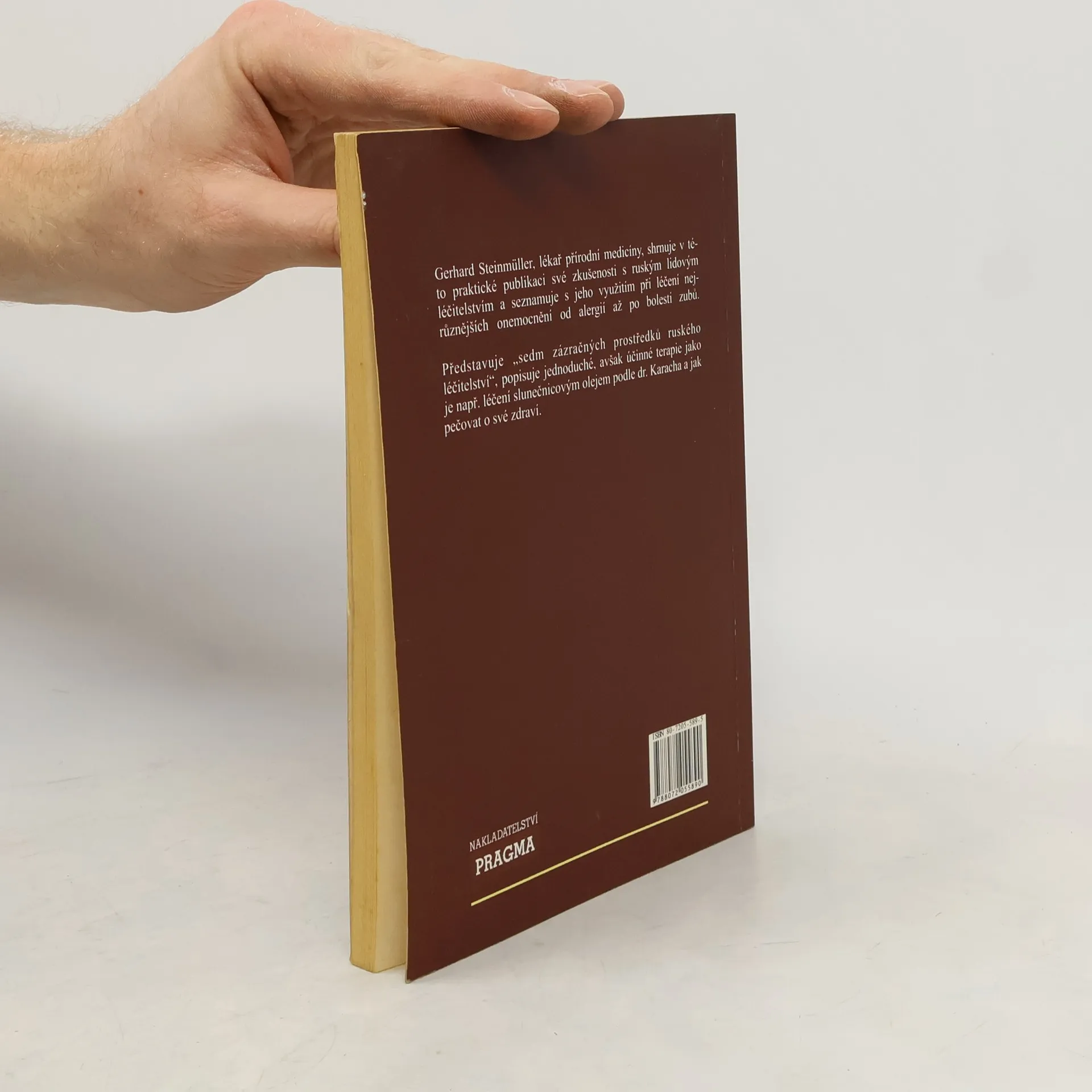 V této praktické publikaci jsou zhrnuté zkušenosti MUDr. Garharda Steinmüllera(lékaře přírodní medicíny) s ruským lidovým léčitelstvím, který seznamuje s ruským lidovým léčitelstvím a jeho využitím při léčení nejrůznějších onemocnění od alergií až po bolesti zubů.