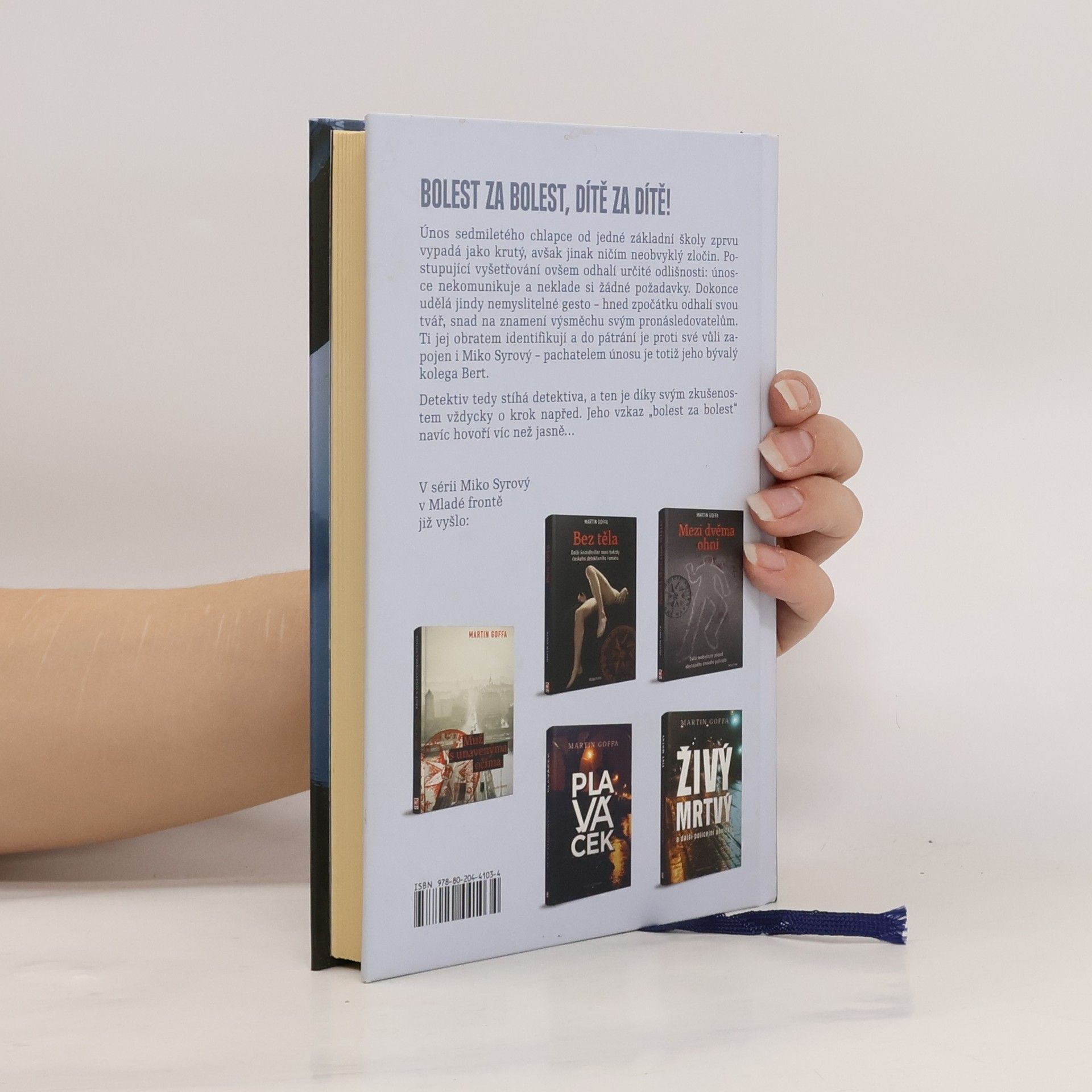 Únos sedmiletého chlapce od jedné základní školy zprvu vypadá jako krutý, avšak jinak ničím neobvyklý zločin. Postupující vyšetřování ovšem odhalí určité odlišnosti: únosce nekomunikuje a neklade si žádné požadavky. Dokonce udělá jindy nemyslitelné gesto – hned zpočátku odhalí svou tvář, snad na znamení výsměchu svým pronásledovatelům. Ti jej obratem identifikují a do pátrání je proti své vůli zapojen i Miko Syrový – pachatelem únosu je totiž jeho bývalý kolega Bert. Detektiv tedy stíhá detektiva, a ten je díky svým zkušenostem vždycky o krok napřed. Jeho vzkaz „bolest za bolest“ navíc hovoří víc než jasně…