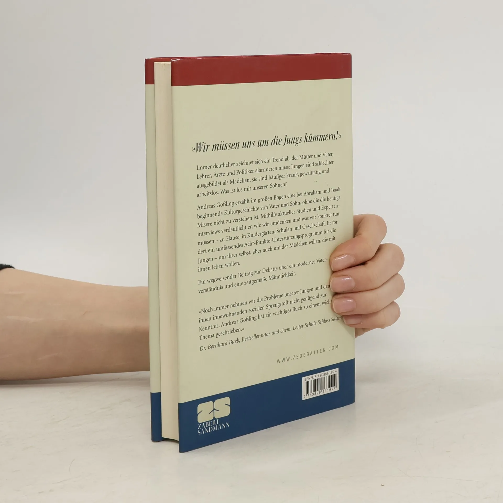 Immer deutlicher zeichnet sich ein Trend ab, der Mütter und Väter, Lehrer, Ärzte und Politiker alarmieren muss: Jungen sind schlechter ausgebildet als Mädchen, sie sind häufiger krank, gewalttätig und arbeitslos. Was ist los mit unseren Söhnen? Andreas Gößling erzählt im großen Bogen eine bei Abraham und Isaak beginnende Kulturgeschichte von Vater und Sohn, ohne die die heutige Misere nicht zu verstehen ist. Mithilfe aktueller Studien und Experteninterviews verdeutlicht er, wie wir umdenken und was wir konkret tun müssen zu Hause, in Kindergärten, Schulen und Gesellschaft. Er fordert ein umfassendes Acht-Punkte-Unterstützungsprogramm für die Jungen um ihrer selbst, aber auch um der Mädchen willen, die mit ihnen leben wollen. Ein wegweisender Beitrag zur Debatte über ein modernes Vaterverständnis und eine zeitgemäße Männlichkeit. 'Noch immer nehmen wir die Probleme unserer Jungen und den ihnen innewohnenden sozialen Sprengstoff nicht genügend zur Kenntnis. Andreas Gößling hat ein wichtiges Buch zu einem wichtigen Thema geschrieben'; Dr. Bernhard Bueb, Bestsellerautor und ehemaliger Leiter Schule Schloss Salem