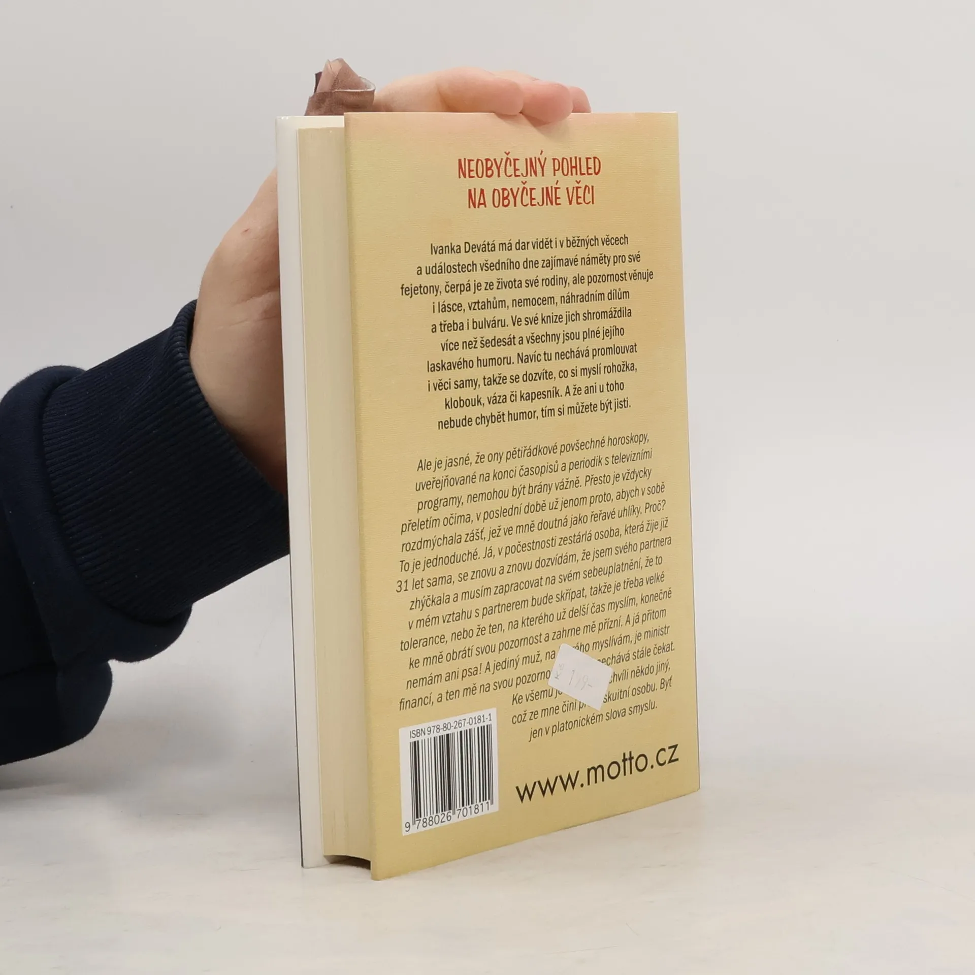 Kniha fejetonů o lásce, vztazích, nemocech, běžném životě a třeba i bulváru. Ve své knize jich Ivanka Devátá shromáždila více než šedesát. Navíc tu nechává promlouvat i věci samy, takže se dozvíte, co si myslí rohožka, klobouk, váza či kapesník. A že u toho nebude chybět humor, tím si můžete být jisti!
