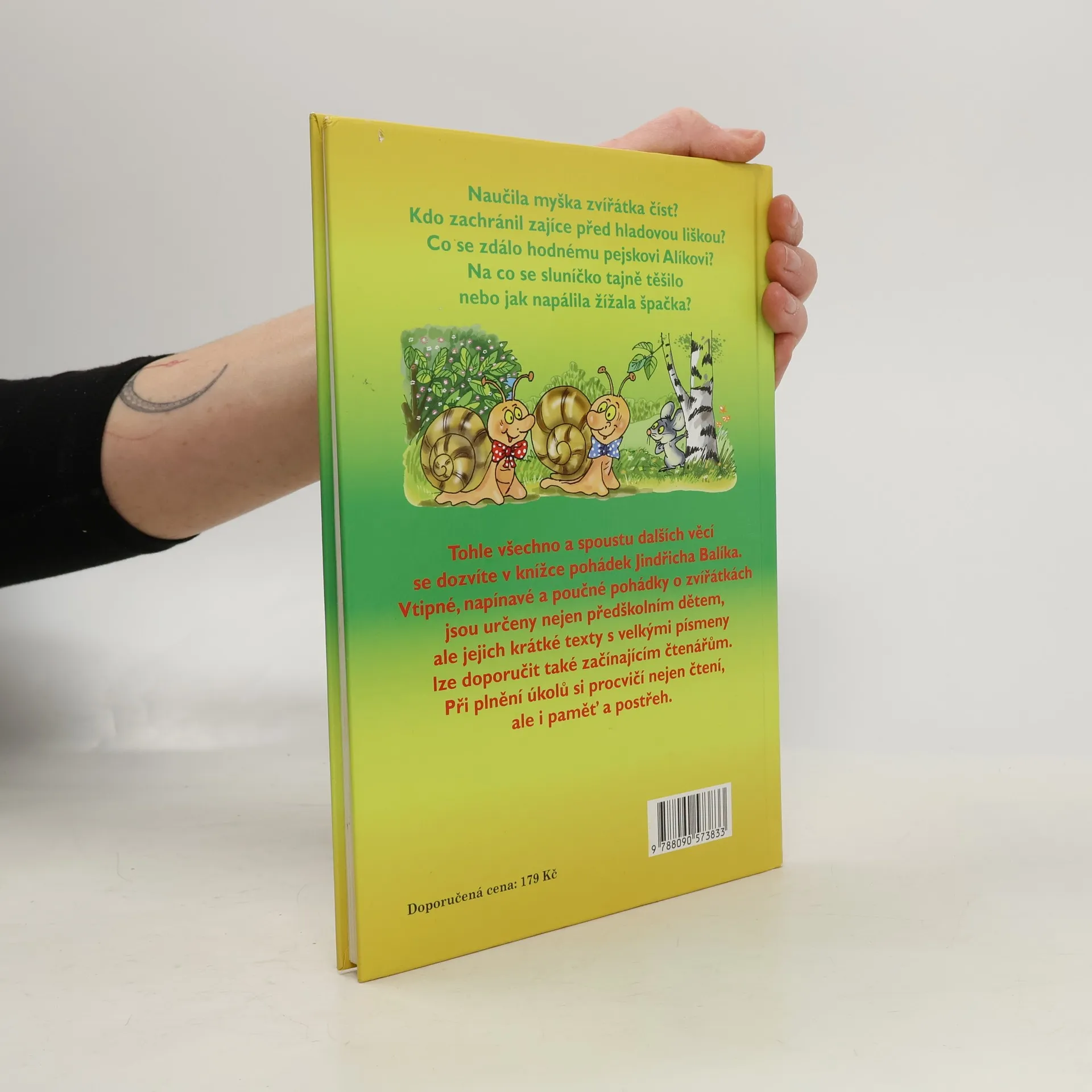 Naučila myška zvířátka číst? Kdo zachránil zajíce před hladovou liškou? Co se zdála hodnému pejskovi Alíkovi? Na co se sluníčko tajně těšila nebo jako napálila žížala špačka? Tohle všechno a spoustu dalších věcí se dozvíte v knížce pohádek Jindřicha Balíka. Vtipné, napínavé a poučné pohádky o zvířátkách jsou určeny nejen předškolním dětem, ale jejich krátké texty s velkými písmeny lze doporučit také začínajícím čtenářům. Při plnění úkolů si procvičí nejen čtení, ale i paměť a postřeh.
