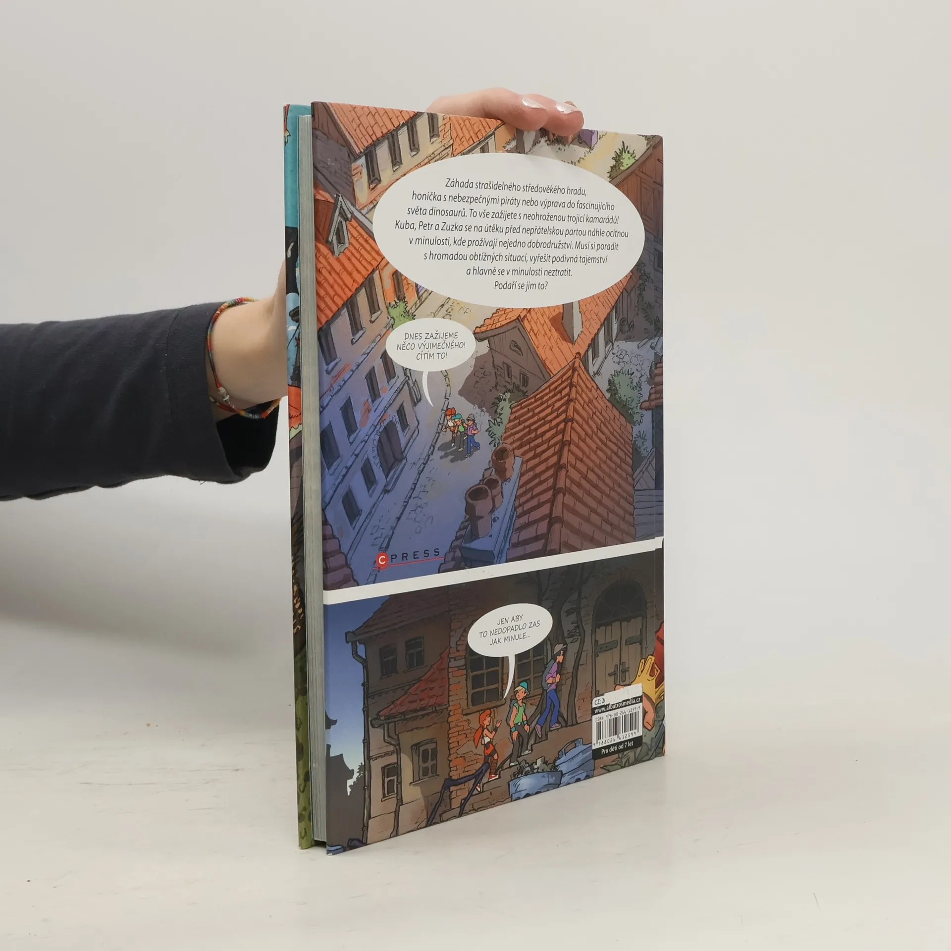 Zábava, akce a napínavá dobrodružství v komiksu oceňovaného kreslíře Záhada strašidelného středověkého hradu, honička s nebezpečnými piráty nebo výprava do fascinujícího světa dinosaurů. To vše zažijete s neohroženou trojicí kamarádů! Kuba, Petr a Zuzka se na útěku před nepřátelskou partou náhle ocitnou v minulosti, kde prožívají nejedno dobrodružství. Musí si poradit s hromadou obtížných situací, vyřešit podivná tajemství a hlavně se v minulosti neztratit. Podaří se jim to?