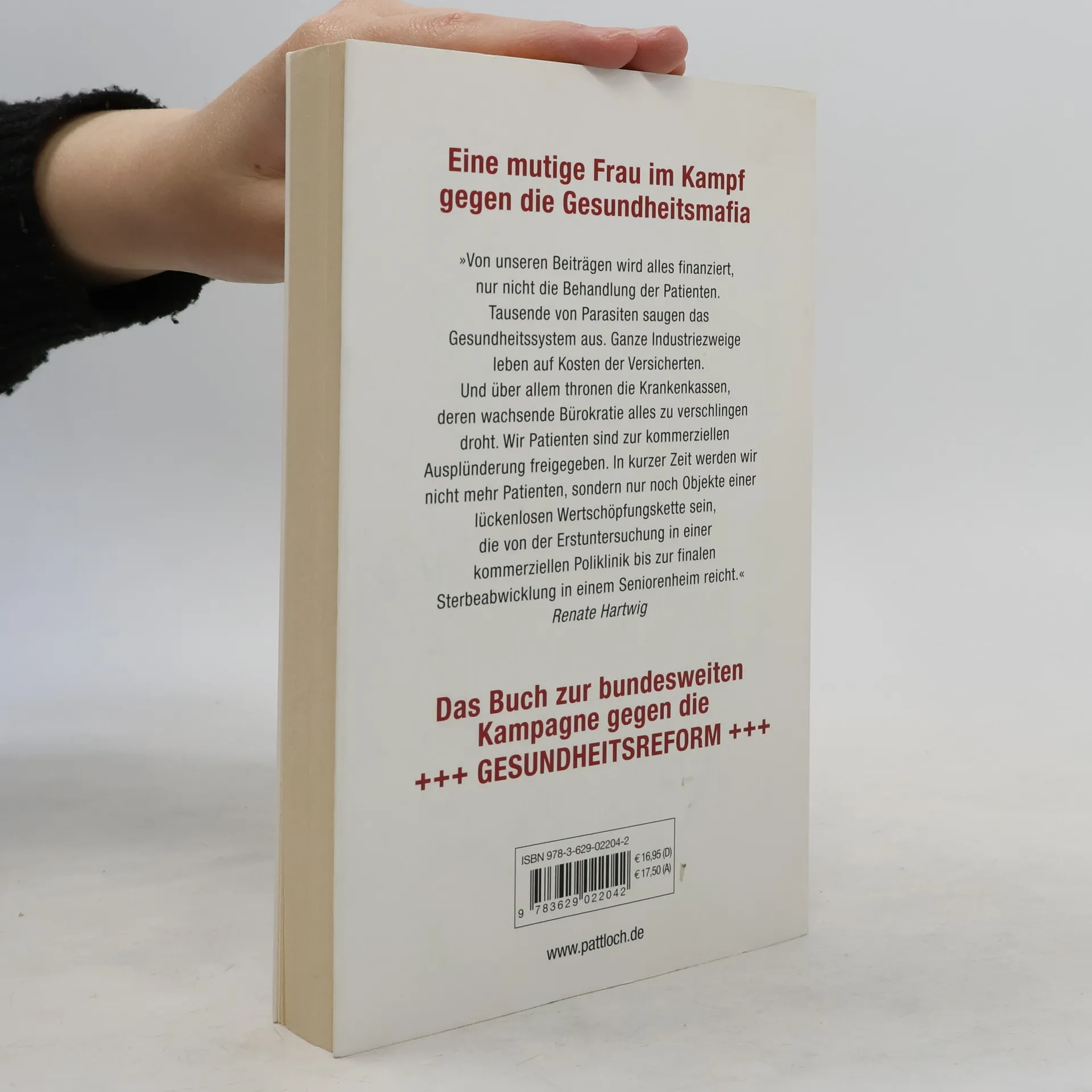 Weil mit Gesundheit kein Staat mehr zu machen ist, liefern die Politiker unser Gesundheitssystem an den freien Markt aus. Der kranke Mensch gerät ins Visier von Kapitalgesellschaften, die nur ein Interesse haben: maximale Rendite. Was in Deutschland unter dem Etikett »Gesundheitsreform« läuft, ist Sprengstoff erster Ordnung. Es geht um 240 Milliarden Euro und um den größten jemals inszenierten Betrug am deutschen Bürger, um seine Ausplünderung als Patient. Noch haben die Bürger eine Chance, den Politikern die rote Karte zu zeigen. Renate Hartwig, die Mutter Courage unter den deutschen Sachbuchautoren, gibt der wachsenden Empörung eine Stimme und klagt an: Krankenschwestern arbeiten für einen Hungerlohn. Alte Menschen verkommen in ihrem Dreck. Aus Patienten werden Kunden, aus Ärzten werden Händler, aus Krankenhäusern werden Abfertigungsanlagen. Und die Hausärzte, die letzten freien Anwälte der Patienten, werden ruiniert und ihrer Existenzgrundlage beraubt, weil sie nicht gleichzuschalten sind.