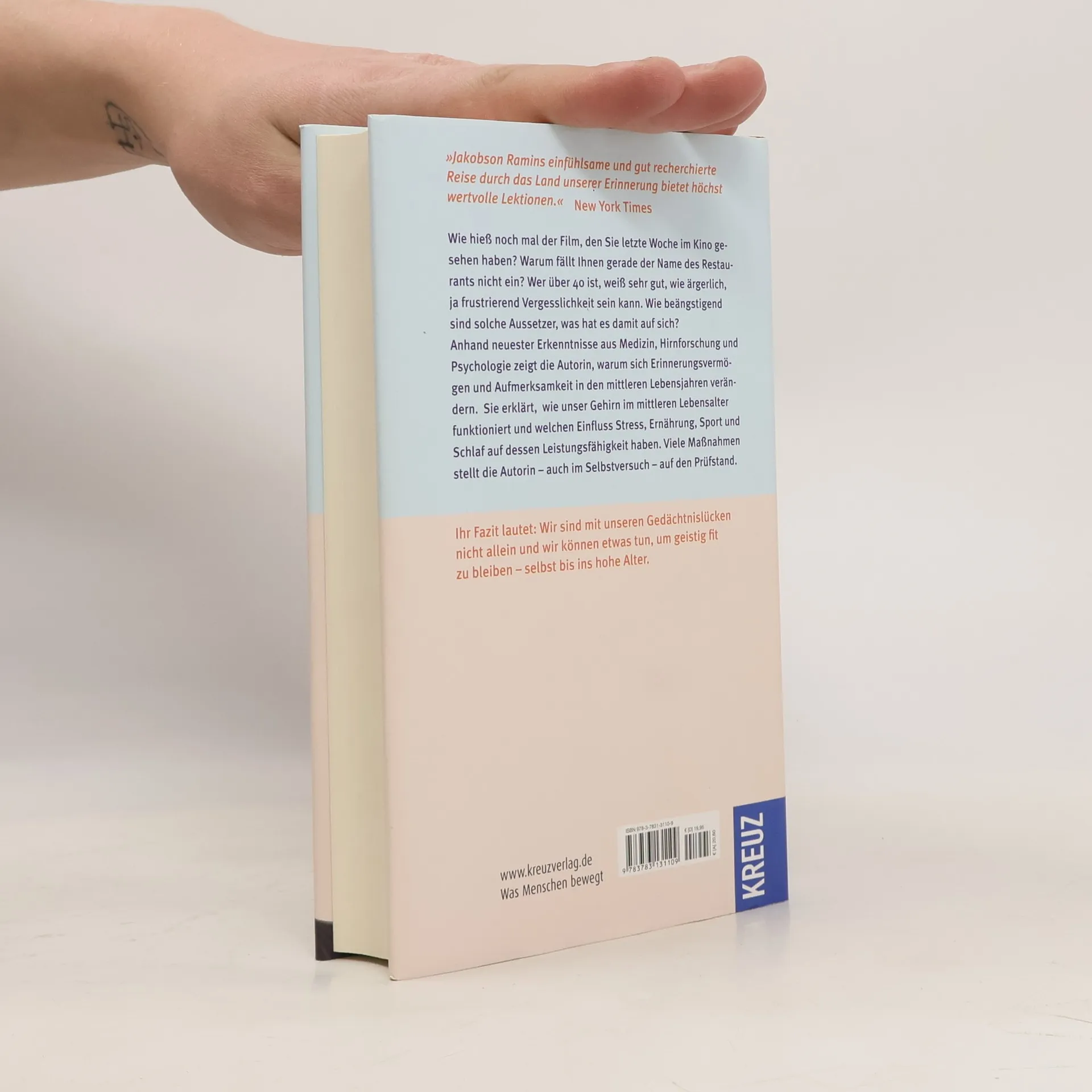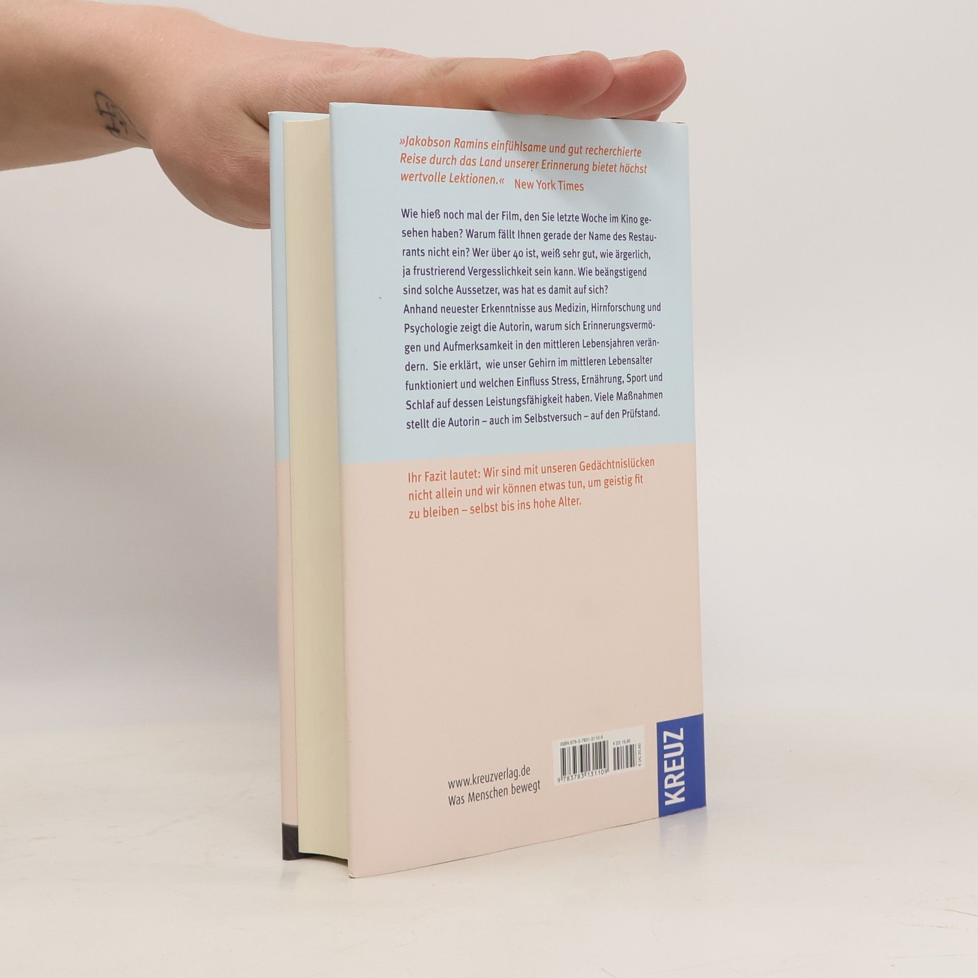 Wie hieß noch mal der Film, den Sie letzte Woche im Kino gesehen haben? Warum fällt Ihnen gerade der Name des Restaurants nicht ein? Wer über 40 ist, weiß sehr gut, wie ärgerlich, ja frustrierend Vergesslichkeit sein kann. Wie beängstigend sind solche Aussetzer, was hat es damit auf sich? Anhand neuester Erkenntnisse aus Medizin, Hirnforschung und Psychologie zeigt die Autorin, warum sich Erinnerungsvermögen und Aufmerksamkeit in den mittleren Lebensjahren verändern. Auch berühmte Gedächtnisforscher wie Nobelpreisträger Eric Kandel oder Daniel Schachter kommen zu Wort. Sie erklären, wie unser Gehirn im mittleren Lebensalter funktioniert und welchen Einfluss Stress, Ernährung, Sport und Schlaf auf dessen Leistungsfähigkeit haben. Viele Maßnahmen stellt die Autorin – auch im Selbstversuch – auf den Prüfstand. Ihr Fazit lautet: Wir sind mit unseren Gedächtnislücken nicht allein und wir können etwas tun, um geistig fit zu bleiben – selbst bis ins hohe Alter.
