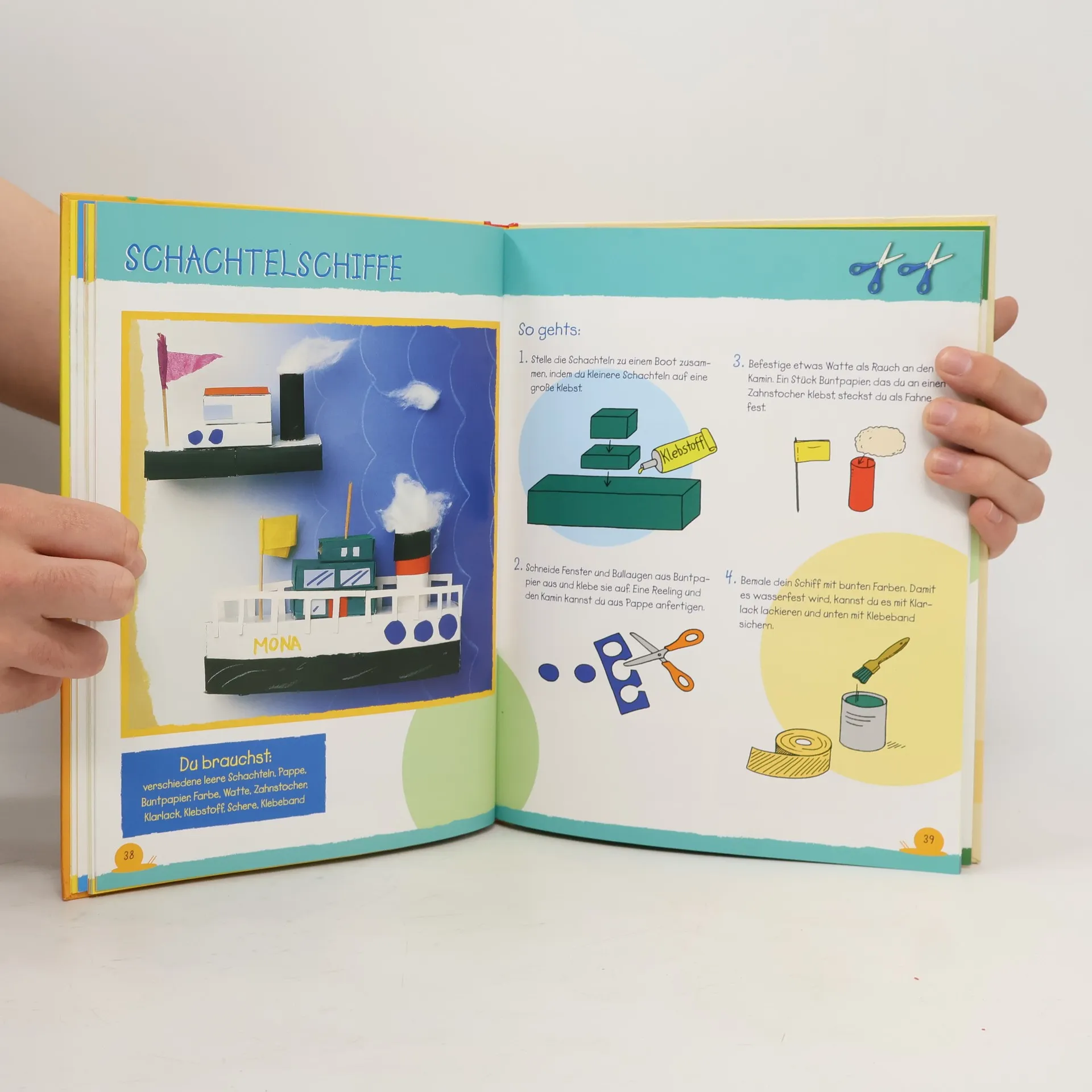 So macht Basteln schon den ganz Kleinen ganz viel Spaß. Papier, Pappe, Filz und Naturmaterialien verwandeln sich in kleine Mäuse, bunte Glitzerfische, lustige Zapfenfiguren, eine Laterne, Prickelsterne und filigrane Engel. Da wird gefaltet, geklebt, modelliert und gemalt - und ganz nebenbei Konzentration, Feinmotorik und Fantasie gefördert.