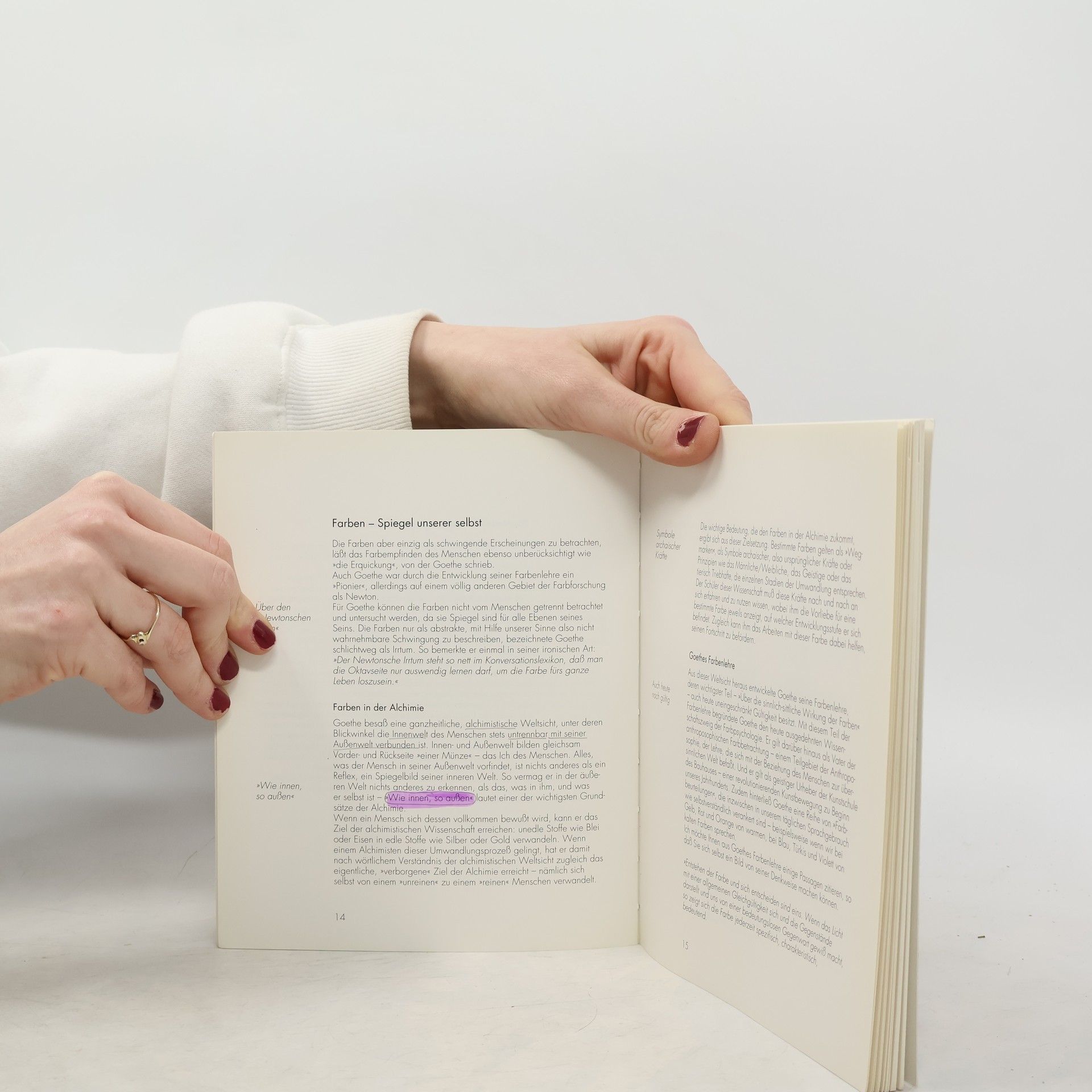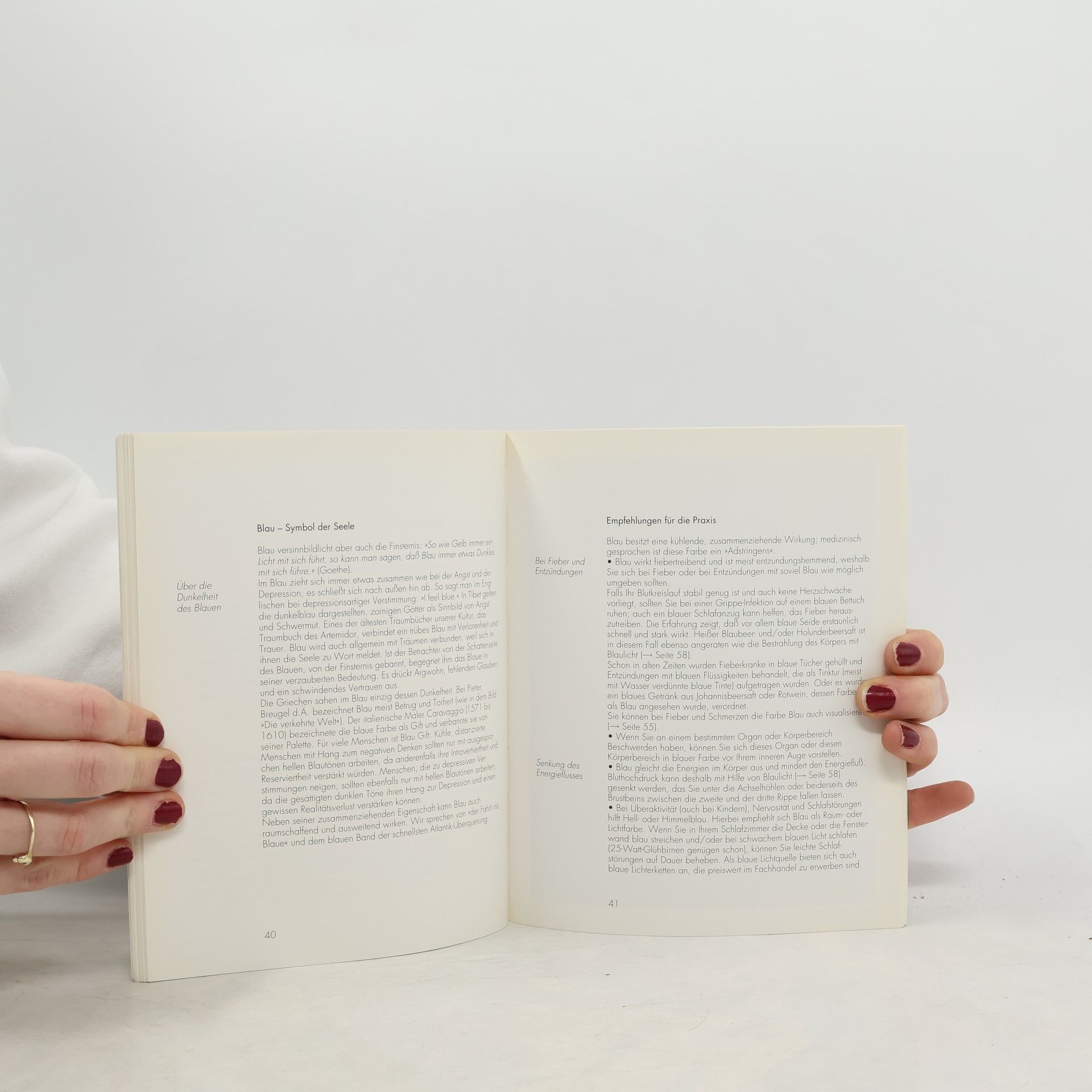 Die einzelnen Farben werden ausführlich vorgestellt: Jedes Kapitel beginnt mit einem Steckbrief, der stichwortartig die wichtigsten Informationen zur jeweiligen Farbe zusammenfasst. Dann präsentiert der Autor wesentliche Aspekte zur Symbolik, Mythologie und psychologischen Wirkung der Farben und gibt zahlreiche Hinweise und Tipps, wie man Farben im Alltag bewusst einsetzen kann. Ein klar strukturiertes Standardwerk zur Farbpsychologie und Farbtherapie, verfasst von einem absoluten Kenner der Materie.