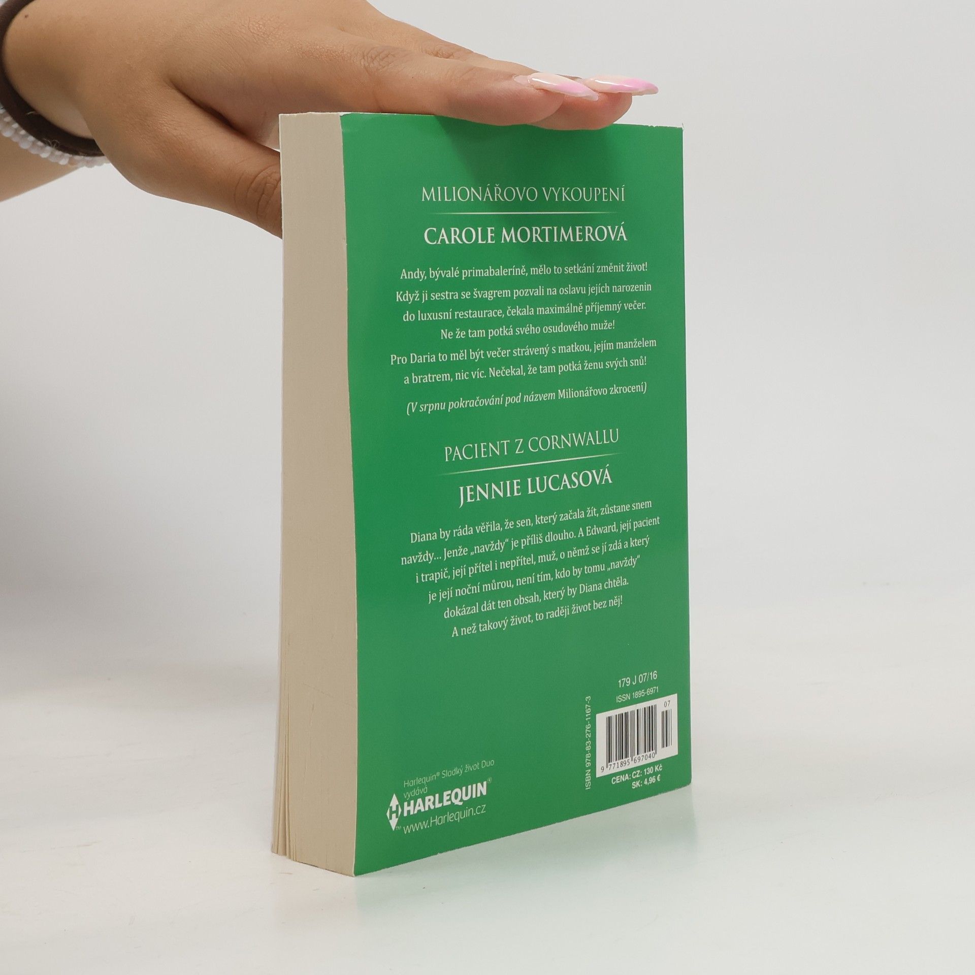 Milionářovo vykoupení Andy, bývalé primabaleríně, mělo to setkání změnit život! Když ji sestra se švagrem pozvali na oslavu jejích narozenin do luxusní restaurace, čekala maximálně příjemný večer. Ne, že tam potká svého osudového muže! Pro Daria to měl být večer strávený s matkou, jejím manželem a bratrem, nic víc. Nečekal, že tam potká ženu svých snů! (V srpnu pokračování pod názvem Milionářovo zkrocení) Pacient z Cornwallu Diana by ráda věřila, že sen, který začala žít, zůstane snem navždy? Jenže "navždy", je příliš dlouho. A Edward, její pacient i trapič, její přítel i nepřítel, muž, o němž se jí zdá, a který je její noční můrou, není tím, kdo by tomu "navždy", dokázal dát ten obsah, který by Diana chtěla. A než takový život, to raději život bez něj!
