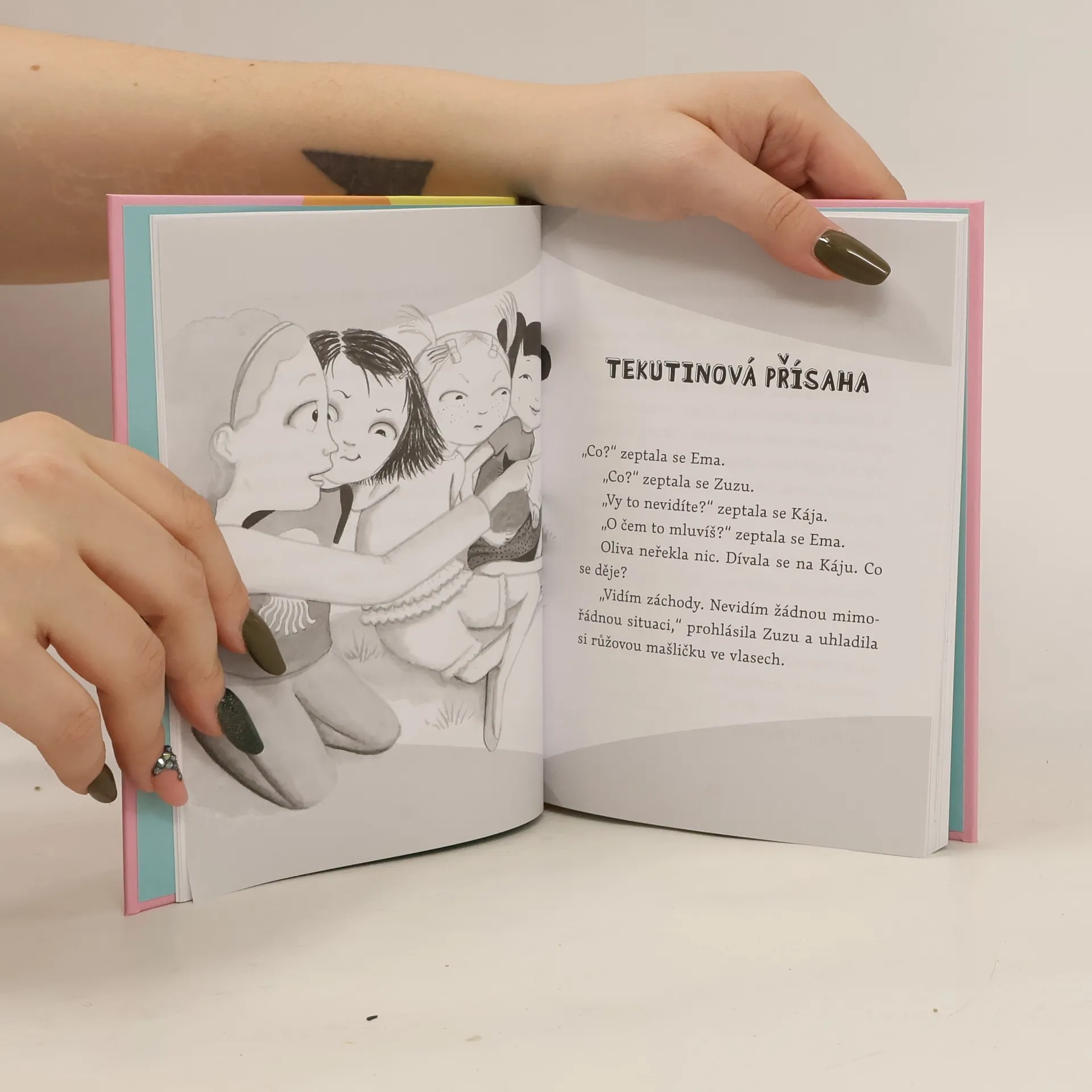 Nejlepší kamarádky Kája a Oliva spolu zažívají jedno dobrodružství za druhým. Tentokrát je čeká velká záhada, na školních záchodech totiž objeví ducha! Oči mu světélkují a vydává podivné zvuky. To je ta nejúžasnější věc, kterou kdy zažily! Po škole se zpráva šíří rychlostí blesku a Kája s Olivou jsou nadšené – alespoň do té doby, než na jejich tajemství přijde paní učitelka. Podle ní duchové do školy nepatří. Kája s Olivou teď budou muset vymyslet, jak ducha poslat pryč. Podaří se jim to? Možná. Bude to zábava a legrace? Jasně!