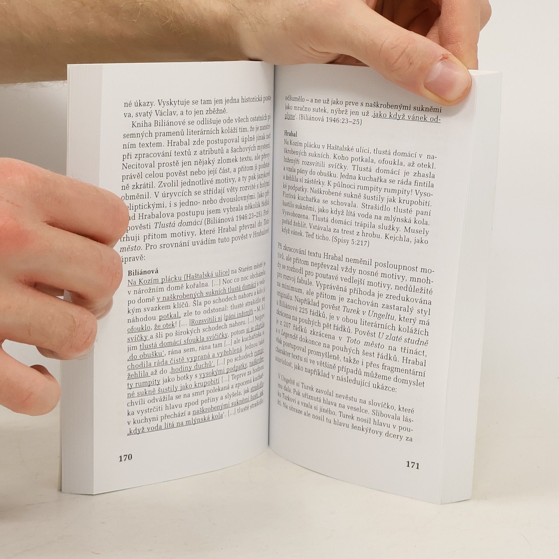 Studie se podrobně věnuje třem méně známým textům B. Hrabala, které jsou sestaveny z nesourodých citátů, autorka text vysvětluje na dobovém a literárním pozadí. // Mrtvomat, Toto město je ve společné péči obyvatel a Legenda zahraná na strunách napjatých mezi kolébkou a rakví. To jsou tři různé texty, vzniklé v 50. a 60. letech 20. století, přičemž můžeme říci, že se zde autor inspiroval tvůrčím procesem Skupiny 42 a surrealismem. Z různých literárních textů, seznamů, jízdenek, návodů atd. Hrabal sestavil text, zdánlivě nesourodý, aby demonstroval tvořivost každého jednotlivce tak, jak to prosazovala avantgarda.