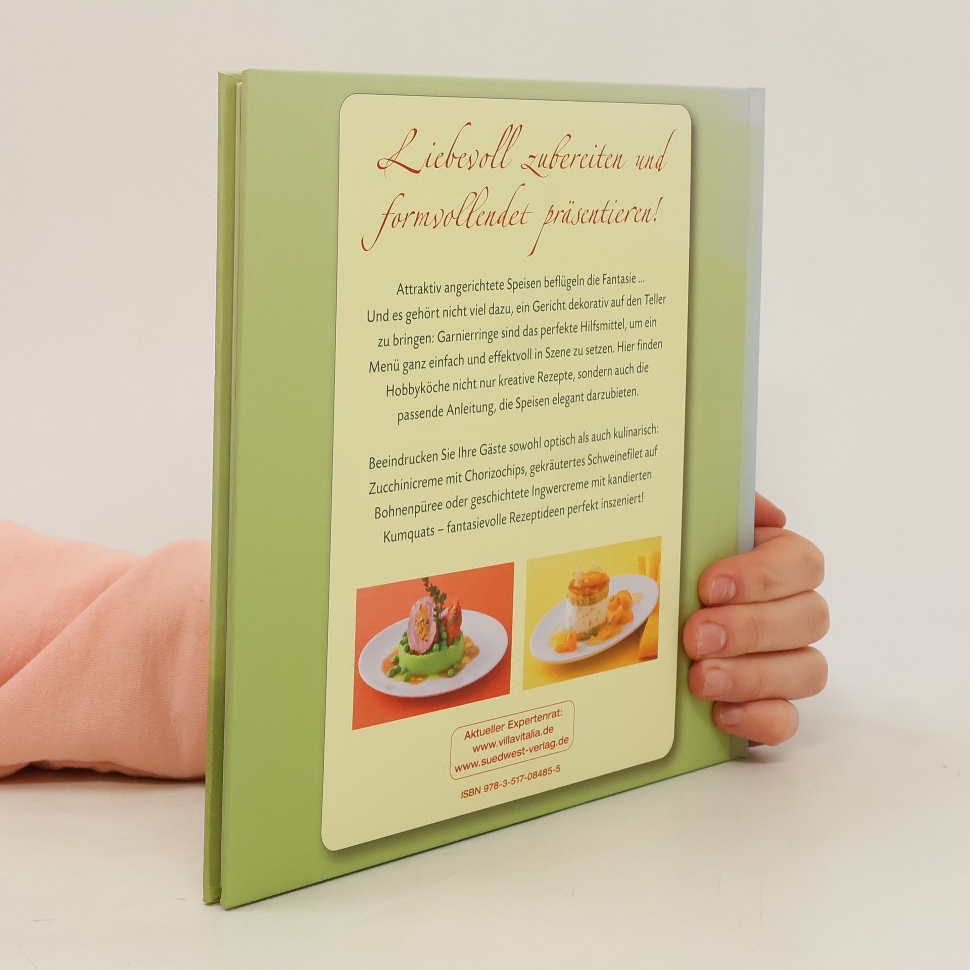 Das perfekte Set für ein perfekt angerichtetes Dinner Ein attraktiv angerichtetes Gericht regt den Appetit an, denn das Auge isst bekanntlich mit. Stilvolle Arrangements lassen sich mit den einfachsten Zutaten zaubern. Bei Sterneköchen hat das eindrucksvolle Anrichten mit Hilfe von Servierringen aus Edelstahl lange Tradition. Aber auch Hobbyköche suchen nach kreativen Ideen, um Speisen elegant darzubieten. Vorspeisen, Hauptgänge und Desserts werden formvollendet auf dem Teller angerichtet und beeindrucken die Gäste. Das einzigartige Set enthält ein aufwendig gestaltetes Kochbuch mit zahlreichen Farbfotos sowie vier hochwertige Edelstahlringe – damit alle Gerichte perfekt inszeniert werden können! Lassen Sie sich von den Profis inspirieren und lernen Sie Schritt für Schritt, Speisen stilvoll anzurichten!