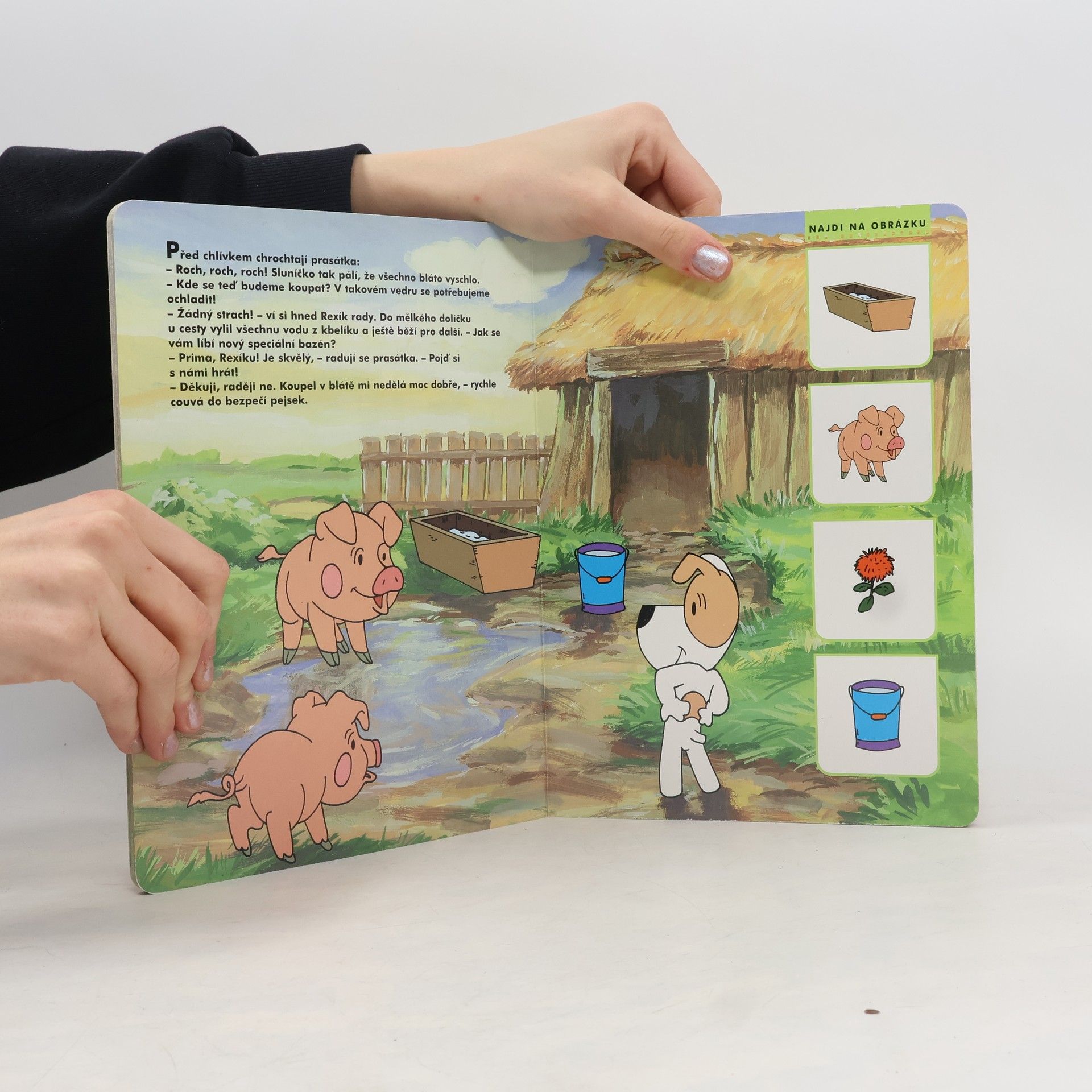 Spolu s Rexíkem, hrdinou televizního seriálu, se porozhlédneme po dvoře a seznámíme se s kohoutem, čuníky, husami i jinými domácími zvířaty. Knížka je vhodná pro děti od 1 do 3 let.