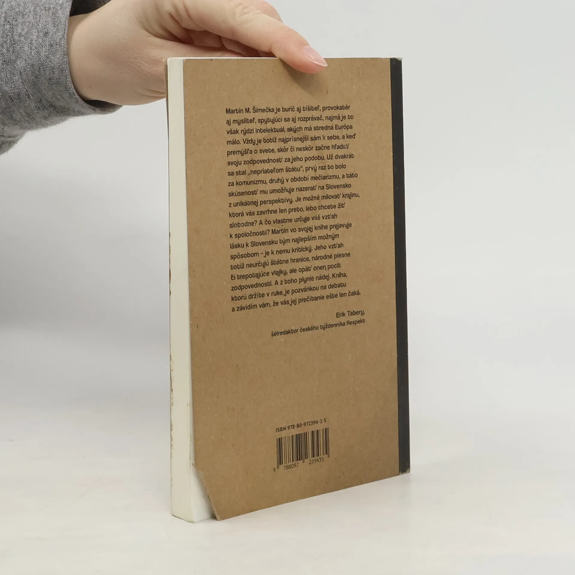 Martin M. Šimečka je burič aj tíšiteľ, provokatér aj mysliteľ, spytujúci sa aj rozprávač, najmä je to však rýdzi intelektuál, akých má stredná Európa málo. Vždy je totiž najprísnejší sám k sebe, a keď premýšľa o svete, skôr či neskôr začne hľadať svoju zodpovednosť za jeho podobu. Už dvakrát sa stal „nepriateľom štátu“, prvý raz to bolo za komunizmu, druhý v období mečiarizmu, a táto skúsenosť mu umožňuje nazerať na Slovensko z unikátnej perspektívy. Je možné milovať krajinu, ktorá vás zavrhne len preto, lebo chcete žiť slobodne? A čo vlastne určuje váš vzťah k spoločnosti? Martin vo svojej knihe prejavuje lásku k Slovensku tým najlepším možným spôsobom – je k nemu kritický. Jeho vzťah totiž neurčujú štátne hranice, národné piesne či trepotajúce vlajky, ale opäť onen pocit zodpovednosti. A z toho plynie nádej.