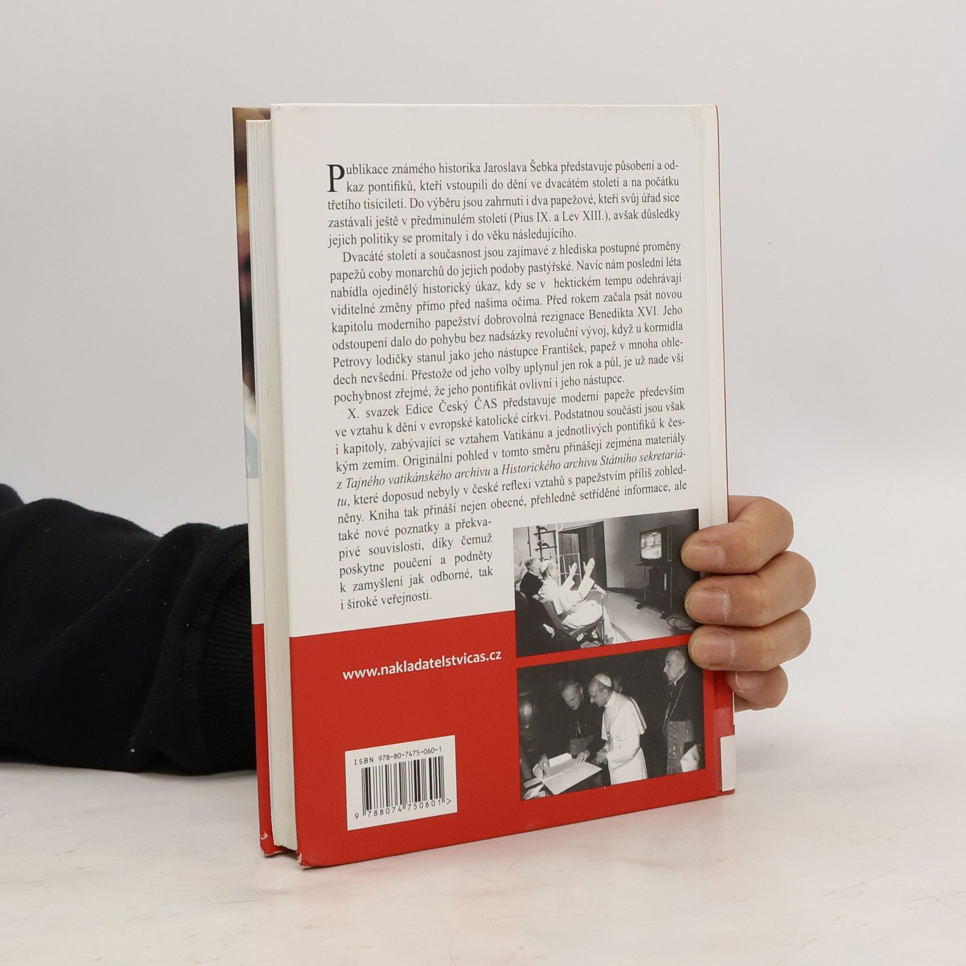 Publikace známého historika Jaroslava Šebka se zaměřuje na působení a odkaz pontifiků, kteří ovlivnili dvacáté století a počátek třetího tisíciletí. Do výběru jsou zahrnuti také dva papežové, Pius IX. a Lev XIII., jejichž politické důsledky zasahovaly i do následujícího období. Dvacáté století a současnost ukazují na proměnu papežů z monarchů na pastýře. V posledních letech jsme byli svědky historického jevu, kdy se před našima očima odehrávají viditelné změny. Dobrovolná rezignace Benedikta XVI. zahájila novou kapitolu moderního papežství, když jeho nástupcem se stal František, papež s mnoha nevšedními rysy. I přes krátký čas od jeho zvolení je zřejmé, že jeho pontifikát ovlivní i budoucí nástupce. X. svazek Edice Český ČAS se soustředí na moderní papeže v kontextu evropské katolické církve a zahrnuje také vztah Vatikánu k českým zemím. Zvláštní pozornost je věnována materiálům z Tajného vatikánského archivu a Historického archivu Státního sekretariátu, které dosud nebyly v české reflexi dostatečně zohledněny. Kniha nabízí nejen přehledné informace, ale i nové poznatky a souvislosti, které podněcují k zamyšlení jak odbornou, tak širokou veřejnost.