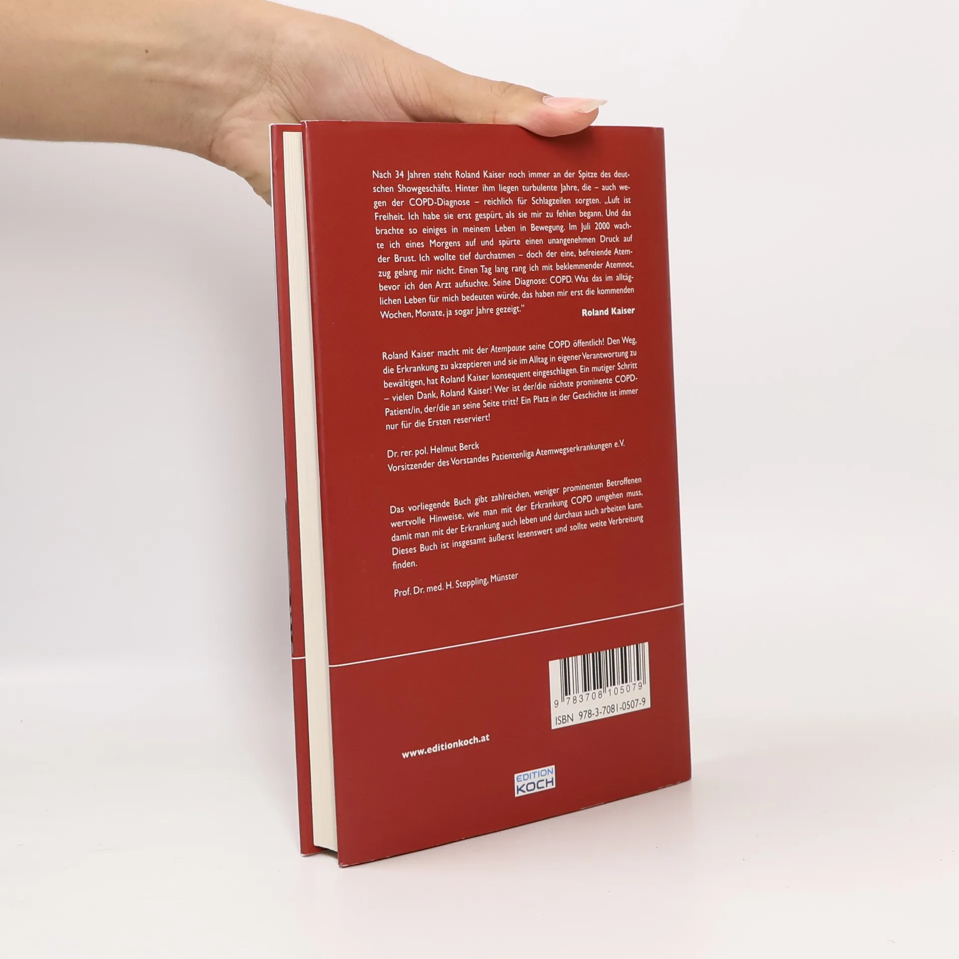 Roland Kaiser spricht mit seinen Liedern viele Menschen an und findet Worte für das Unaussprechliche. Erotik, Sexualität und Hoffnungen durchziehen seine Texte und schöpfen aus seiner reichen Lebenserfahrung. Nach 34 Jahren im deutschen Showgeschäft steht er weiterhin an der Spitze und hat turbulente Zeiten durchlebt, besonders seit seiner COPD-Diagnose. Für Menschen mit einer bewegten Vergangenheit gibt es zwei Wege: aufzugeben oder dem Leben die Stirn zu bieten. Kaiser wählte Letzteres und trat ins Rampenlicht. Seine Ecken und Kanten haben ihn geprägt, und er bekennt sich zu einer „unstillbaren Neugier auf Leben“. Mit über 90 Millionen verkauften Tonträgern hat er eine beeindruckende Bilanz. Lungenkrankheiten sind weltweit eine der häufigsten Todesursachen, und nahezu 15% der Deutschen über 40 leiden an COPD. Diese Erkrankung muss jedoch kein Todesurteil sein. Frühzeitig diagnostiziert, kann COPD als Handicap akzeptiert und in den Alltag integriert werden. Ein einfacher Lungenfunktionstest ermöglicht eine frühe Diagnose. Kaiser, selbst betroffen, hat gelernt, mit seiner Einschränkung zu leben und sieht sie als zusätzliche Lebensqualität. Mit diesem Buch möchte er Betroffene und Ärzte für das Thema sensibilisieren und Lebensfreude schenken.