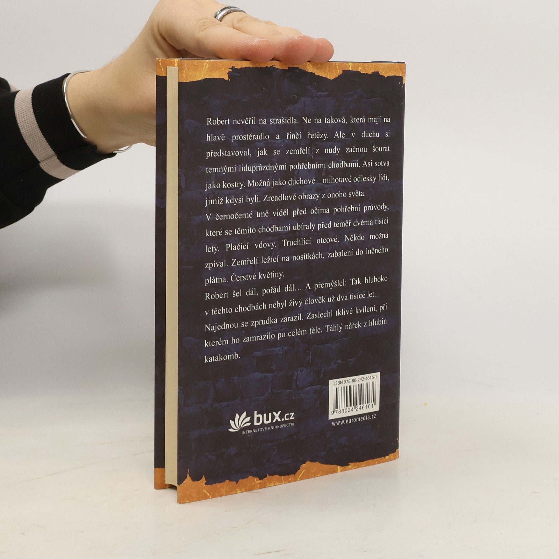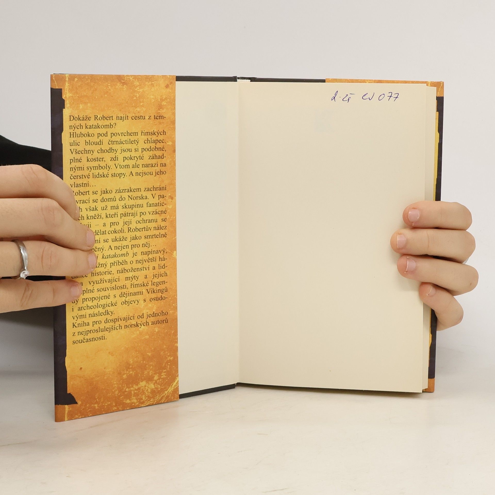 V temných katakombách hluboko pod povrchem římských ulic bloudí čtrnáctiletý Robert a hledá cestu ven. Avšak všechny chodby jsou si podobné, pokryté malbami lebek a záhadnými symboly. Vtom Robert narazí na čerstvé lidské stopy. A nejsou to jeho vlastní… Prastaré mýty a jejich záhadné souvislosti, římské legendy propojené s vikinskými dějinami, archeologické objevy s osudovými následky – Robert se často ocitá ve smrtelném nebezpečí, a to nejen v Itálii, ale i po návratu do Norska, pronásledován skupinou fanatických kněží… Napínavý mysteriózní thriller od norského autora bestsellerů Konec kruhu, Strážce úmluvy, Luciferovo evangelium a Nostradamova závěť.