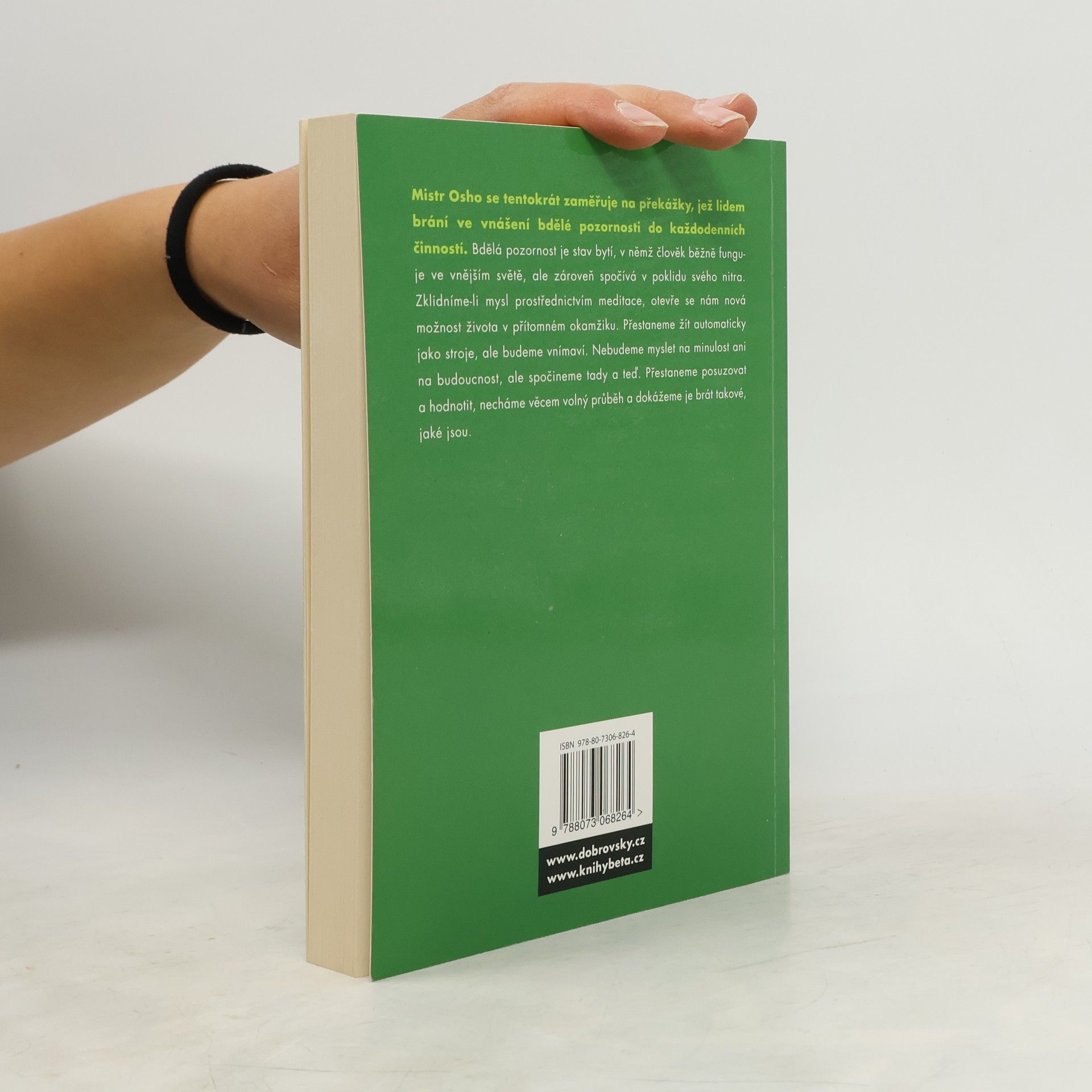 Mistr Osho se tentokrát zaměřuje na překážky, jež lidem brání ve vnášení bdělé pozornosti do každodenních činností. Bdělá pozornost je stav bytí, v němž člověk běžně funguje ve vnějším světě, ale zároveň spočívá v poklidu svého nitra. Zklidníme-li mysl prostřednictvím meditace, otevře se nám nová možnost života v přítomném okamžiku. Přestaneme se soustředit na minulost a budoucnost a budeme žít naplno teď a tady, přestaneme posuzovat, necháme věcem volný průběh a dokážeme je brát takové, jaké jsou.