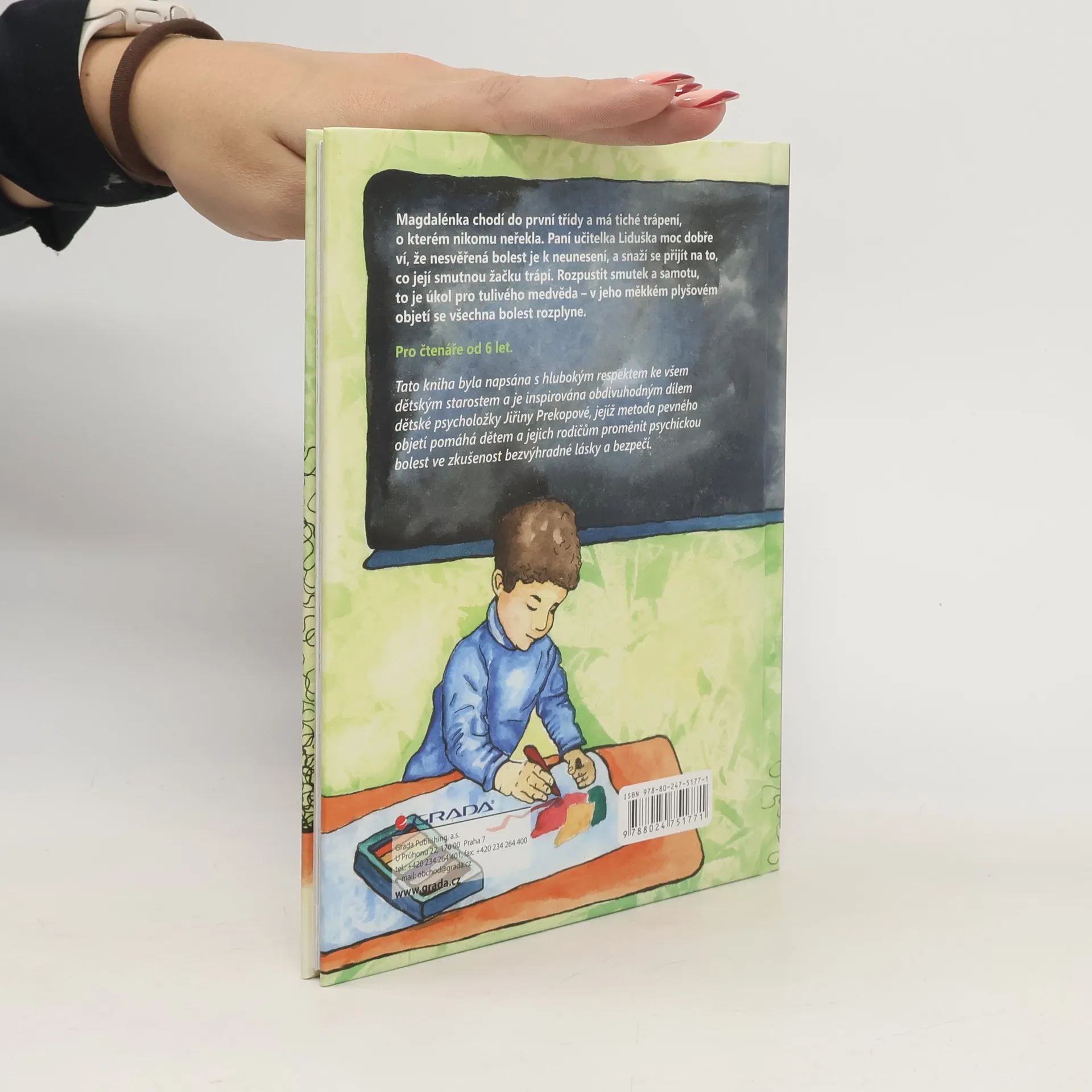 Magdalénka má tiché trápení, o kterém nikomu neřekla. Paní učitelka Liduška moc dobře ví, že nesvěřená bolest je k neunesení, a snaží se přijít na to, co její smutnou žačku trápí. Rozpustit smutek a samotu, to je úkol pro tulivého medvěda - v jeho měkkém plyšovém objetí se všechna bolest rozplyne. Křehký příběh o dětském smutku, naději i radosti doprovázejí nevšední ilustrace Zdeňky Řezbové Morávkové. Tato kniha byla napsána s hlubokým respektem ke všem dětským starostem a je inspirována obdivuhodným dílem dětské psycholožky Jiřiny Prekopové, jejíž metoda pevného objetí pomáhá dětem a jejich rodičům proměnit psychickou bolest ve zkušenost bezvýhradné lásky a bezpečí.