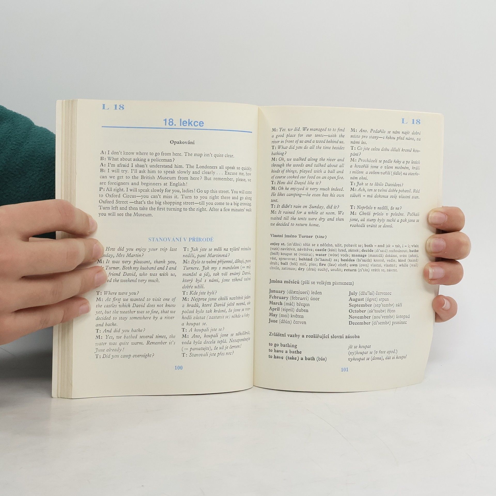 Kniha členěná do 30 lekcí. Každá lekce (mimo opakování učiva) obsahuje souvislý text, nejčastěji rozhovor, slovíčka k lekci, gramatickou část a cvičení. V závěru knihy je stručný přehled mluvnice, abecední anglicko-český a česko-anglický slovník k překladovým cvičením, klíč ke cvičením.