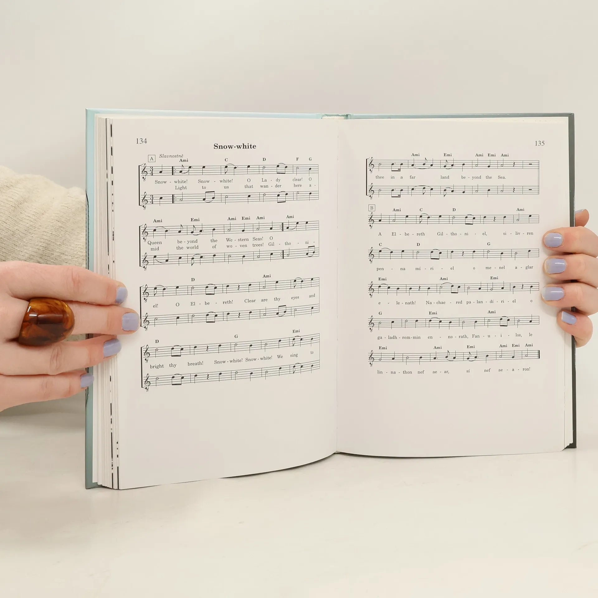 Jádrem tohoto zpěvníku jsou písně složené Poetickým společenstvem, což je od roku 1992 volné sdružení hudebníků z celé republiky. Dalšími písněmi pak přispěli jejich pokračovatelé, kteří nejčastěji pochází z pražských tolkienovských klubů. Vydavatel Michael Bronec sám jeden takový vede, je proto hned snáze pochopitelné, proč zariskoval a tento jistě nákladný projekt realizoval – čistě ze zájmu o Tolkiena a kulturní prostředí na něj nabalené. Zpěvník obsahuje 84 písní, což je obdivuhodný počet. Většinu z nich složili právě členové Poetického společenstva v čele s Petrem Bohdanem, Katkou García a Kateřinou Schwarzerovou. Mezi hosty pak najdeme autory známější svou literární činností, prosazovanou stejným nakladatelstvím – Jakuba D. Kočího, Ivanu Kuglerovou či Martina D. Antonína.