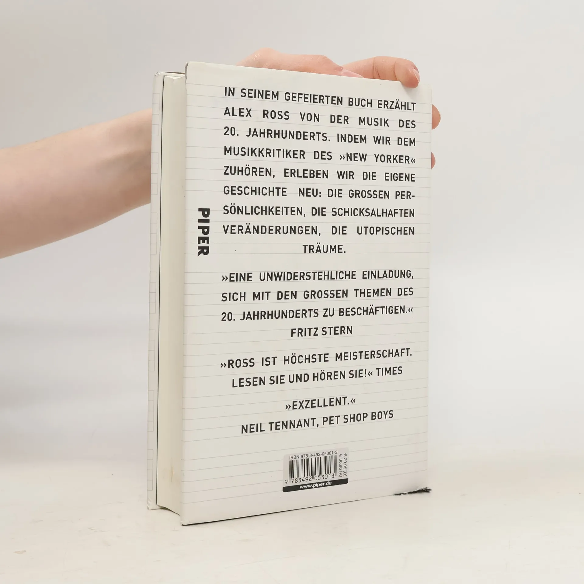 Eine glänzende Erzählung lässt uns die Geschichte des 20. Jahrhunderts über seine Musik neu erleben. Alex Ross, Kritiker des »New Yorker«, bringt uns aus dem Wien und Graz am Vorabend des Ersten Weltkriegs ins Paris und Berlin der Goldenen Zwanzigerjahre, aus Hitler-Deutschland über Russland ins Amerika der Sechziger- und Siebzigerjahre. Er führt uns durch ein labyrinthisches Reich, von Jean Sibelius bis Lou Reed, von Gustav Mahler bis Björk. Und wir folgen dem Aufstieg der Massenkultur wie der Politik der Massen, den dramatischen Veränderungen durch neue Techniken genauso wie den Kriegen, Experimenten, Revolutionen und Aufständen der zurückliegenden 100 Jahre. »Eine unwiderstehliche Einladung, sich mit den großen Themen des 20. Jahrhunderts zu beschäftigen.« Fritz Stern
