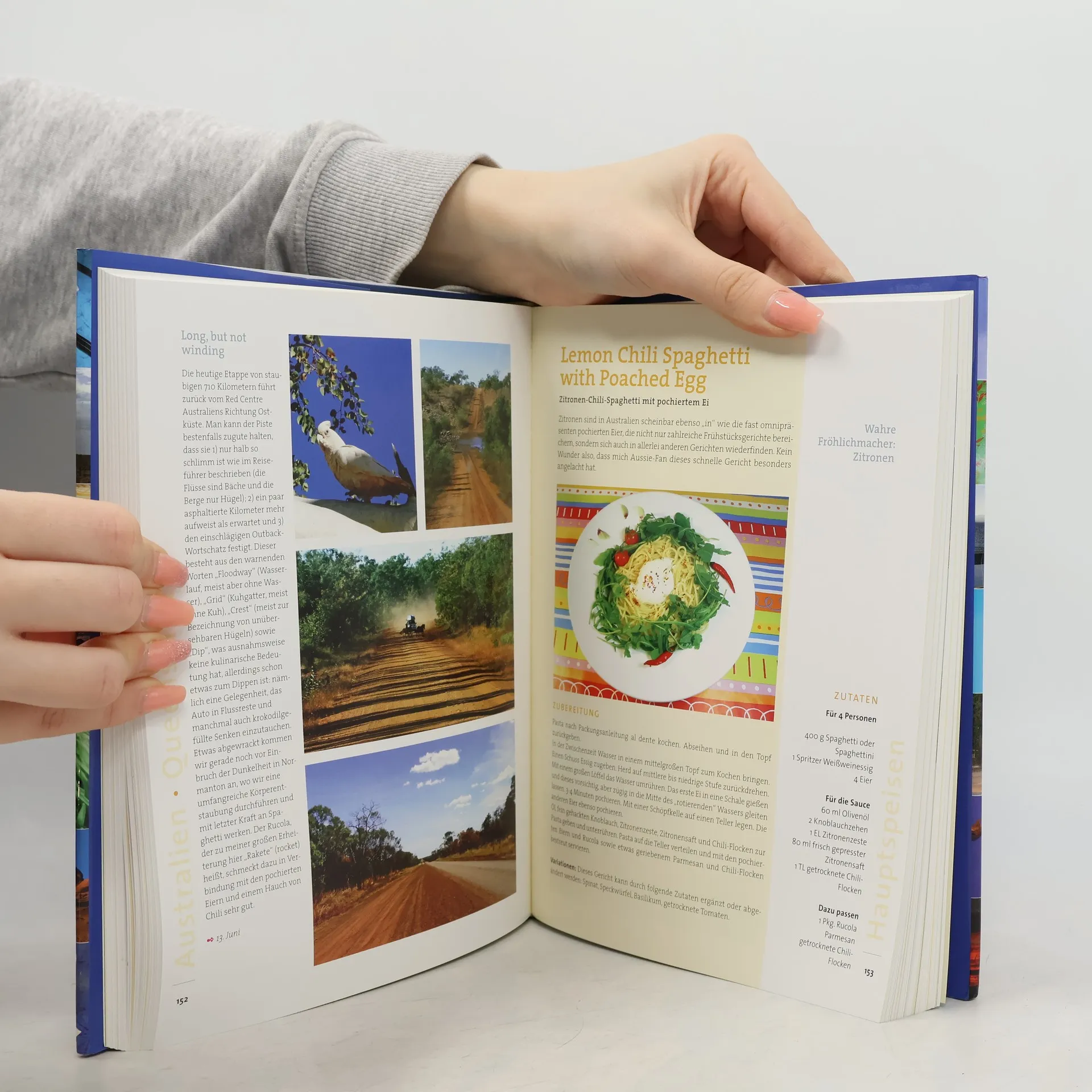 Andere bringen Muscheln und ein paar Schnappschüsse von ihren Reisen mit, sie aber kommt mit einem Koffer voller Rezepte und 15.000 Fotos zurück. Auf einer neunmonatigen Weltreise ist eben alles möglich. Glücklicherweise reist sie nicht nur leidenschaftlich gerne, sondern fotografiert, textet und kocht auch ausgezeichnet. So kommt es, dass die Autorin nun eine Auswahl aus den 1.000 aufgelesenen Rezeptideen präsentiert – eingepackt zwischen Strand und Dschungel, Großstadtmetropolen und kleinen Inseln, reich bebildert und so ansprechend, dass man am liebsten sofort loslegen würde. Dieses Kochbuch stillt auch das stärkste Fernweh. Hintergrundgeschichten zu Land und Leuten, amüsante Exzerpte aus ihrem Reiseblog über Begegnungen und Erlebnisse sowie jede Menge Tipps für passende Bücher und Filme runden das kulinarische Erlebnis ab. Und das Beste daran: Die Rezepte sind einfach nachzukochen und machen kleine Fluchten aus dem Alltag zum Kinderspiel. In diesem Sinne: Gute Reise und guten Appetit!