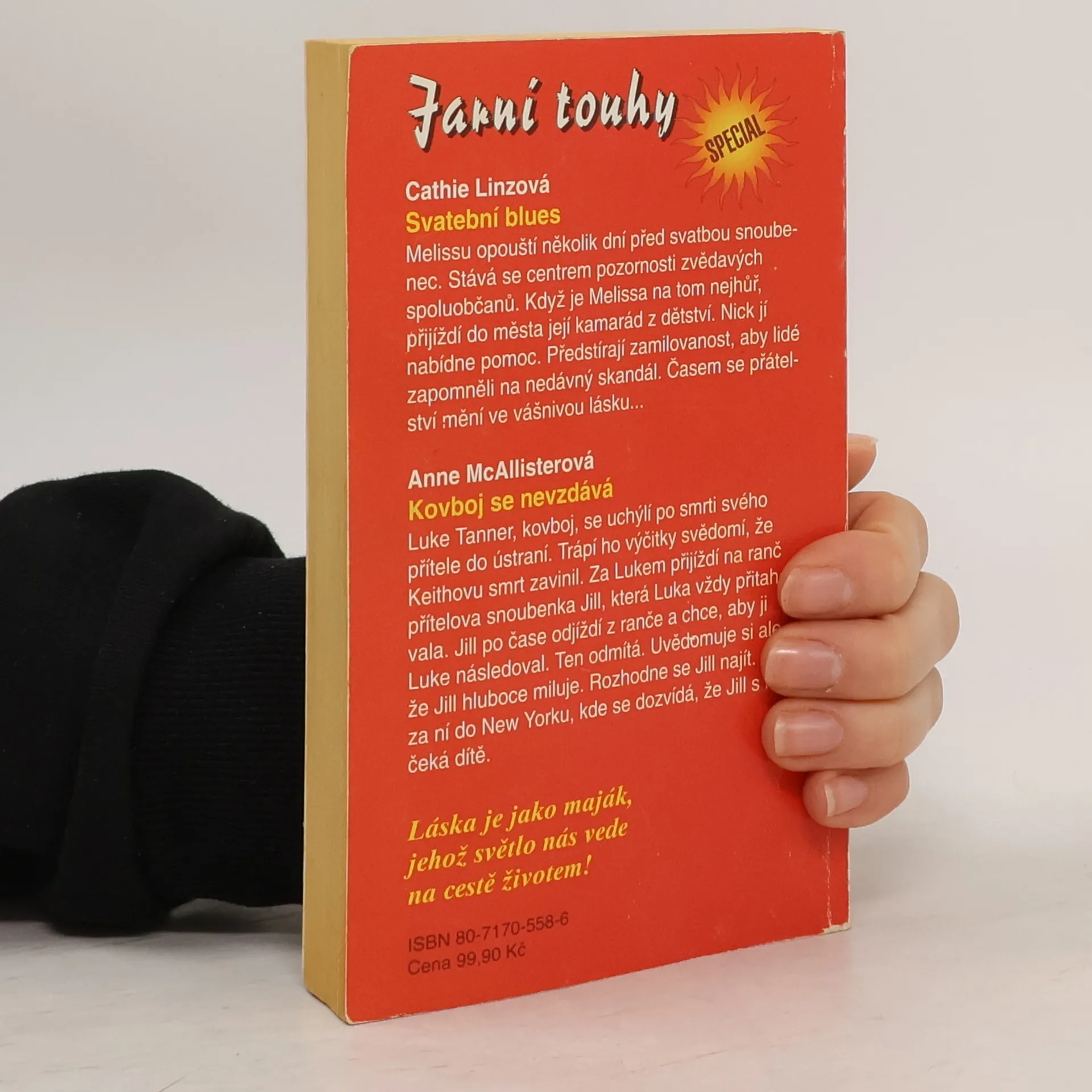 Svatební blues - Melissu opouští několik dní před svatbou snoubenec. Stává se centrem pozornosti zvědavých spoluobčanů. Když je Melissa na tom nejhůř, přijíždí do města její kamarád z dětství. Nick jí nabídne pomoc. Předstírají zamilovanost, aby lidé zapomněli na nedávný skandál. Časem se přátelství mění na vášnivou lásku... Kovboj se nevzdává - Luke Tanner, kovboj, se uchýlí po smrti svého přítele do ústraní. Trápí ho výčitky svědomí, že Keithovu smrt zavinil. Za Lukem přijíždí na ranč přítelova snoubenka Jill, která Luka vždy přitahovala. Jill po čase odjíždí z ranče a chce , aby ji Luke následoval. Ten odmítá. Uvědomuje si ale, že Jill hluboce miluje. Rozhodne se Jill najít. Jede zaní do New Yorku, kde se dozvídá, že Jill s ním čeká dítě.