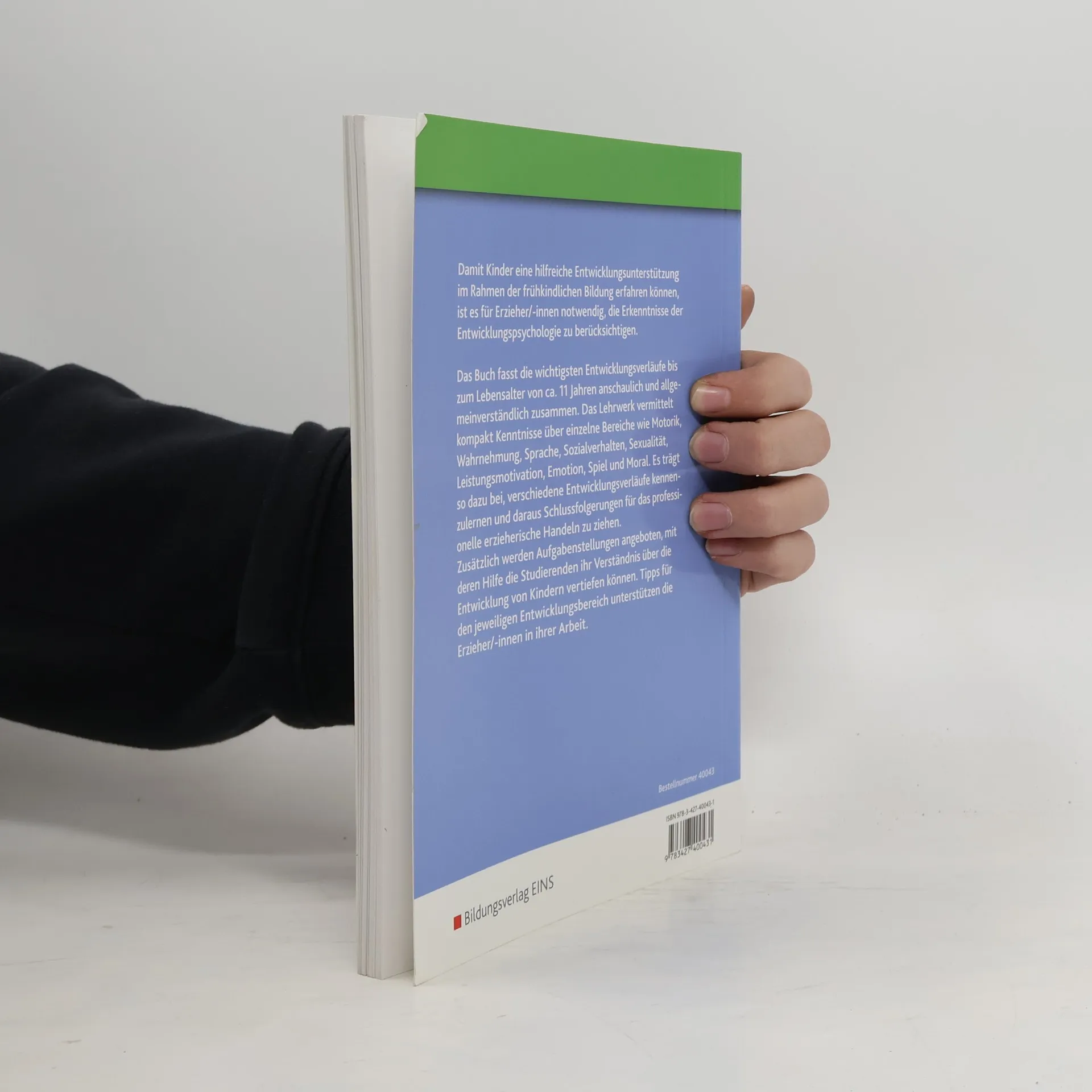 Damit Kinder eine hilfreiche Entwicklungsunterstützung im Rahmen der frühkindlichen Bildung erfahren können, ist es für Erzieher/-innen notwendig, die Erkenntnisse der Entwicklungspsychologie zu berücksichtigen. Die Neuauflage fasst die wichtigsten Entwicklungsverläufe bis zum Lebensalter von ca. 11 Jahren anschaulich und allgemeinverständlich zusammen und ist somit auch bestens zur Prüfungsvorbereitung geeignet. Das Lehrwerk vermittelt kompakt Kenntnisse über einzelne Bereiche wie Motorik, Wahrnehmung, Sprache, Sozialverhalten, Sexualität, Leistungsmotivation, Emotion, Spiel und Moral. Es trägt so dazu bei, verschiedene Entwicklungsverläufe kennen zu lernen und daraus Schlussfolgerungen für das professionelle erzieherische Handeln zu ziehen. Zusätzlich werden Aufgabenstellungen angeboten, mit deren Hilfe die Studierenden ihr Verständnis über die Entwicklung von Kindern vertiefen können. Tipps für den jeweiligen Entwicklungsbereich unterstützen die Erzieher/-innen in ihrer Arbeit. Ein passendes Arbeitsheft rundet das Konzept ab.