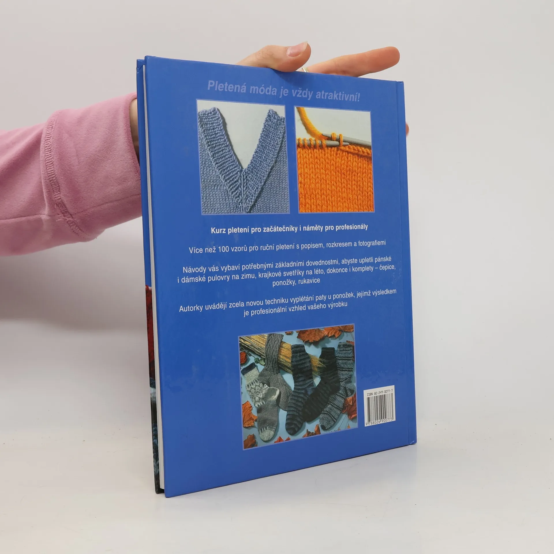 Od základního oka až po pulovr: 100 jednobarevných i vícebarevných vzorů s popisem. Příručka určená začínajícím pletařkám, vhodná i pro výuku ručních prací v základní škole. Od přehledu základních potřeb a pomůcek přes různé techniky pletení až po jednoduché i složitější vzory a modely. Závěrečná kapitola podrobně popisuje postupy při pletení ponožek a rukavic. Veškeré popisy jsou doprovázeny nákresy a fotografiemi.