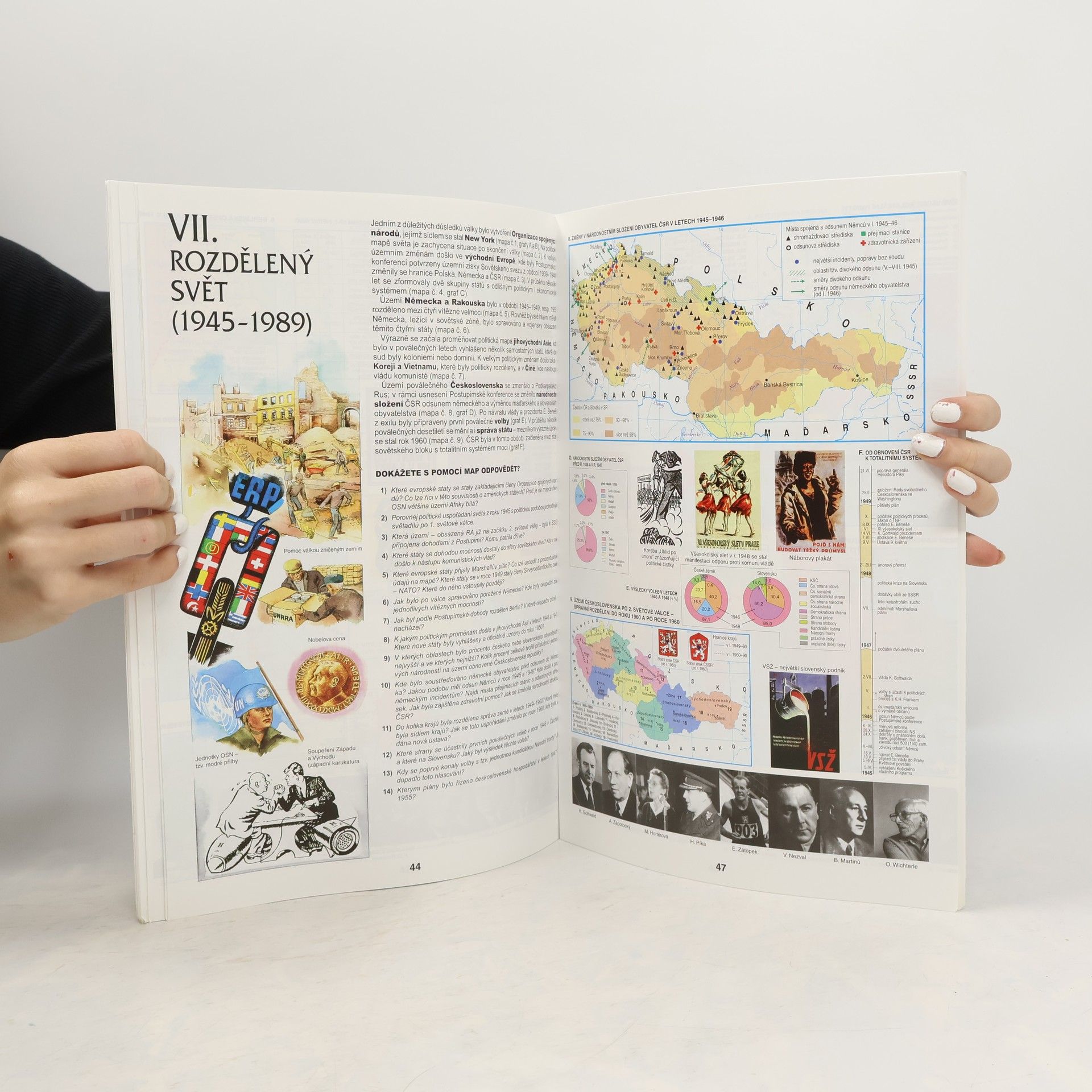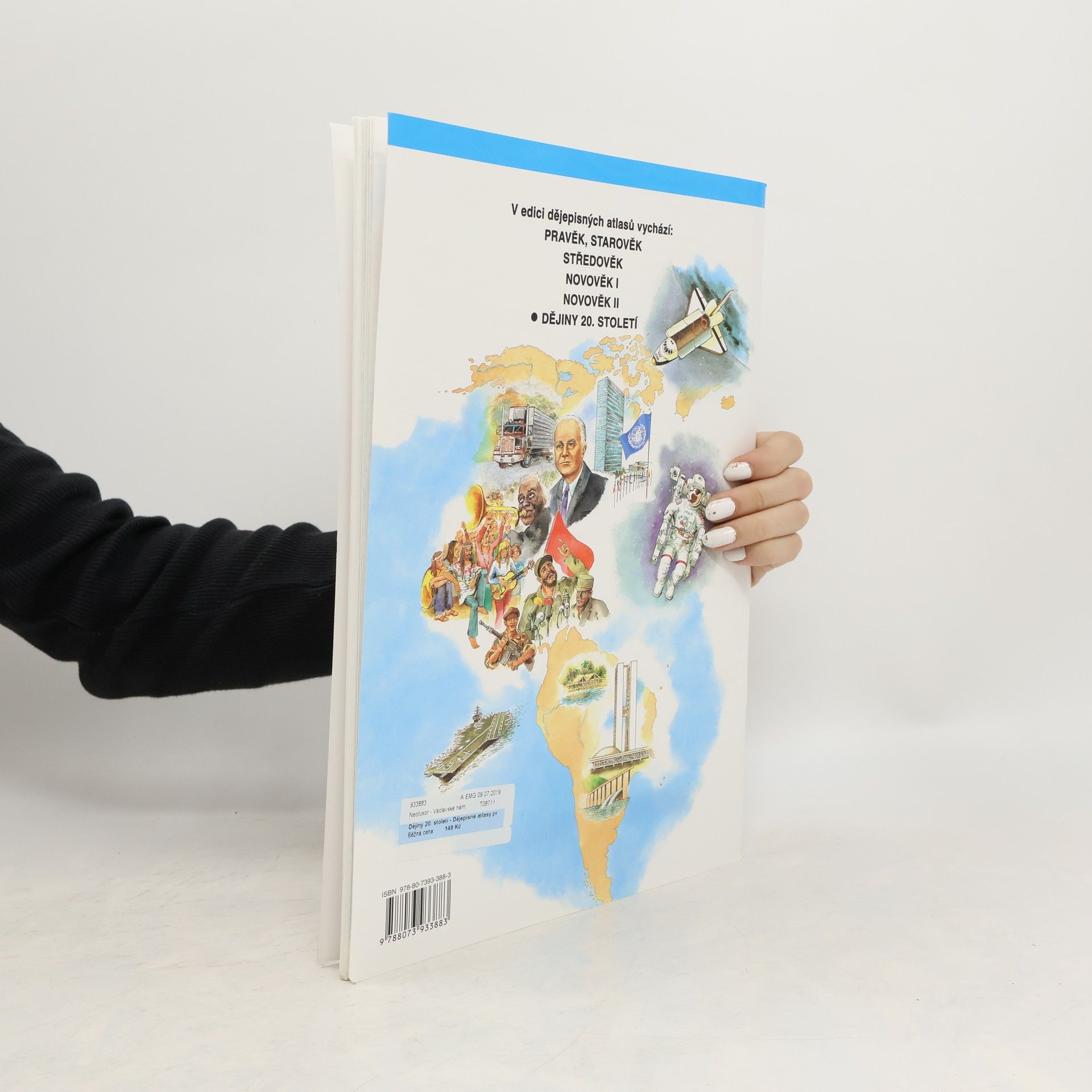 Titul, který je další součástí ucelené řady dějepisných atlasů určené pro 2. stupeň základních škol a víceletá gymnázia. Zahrnuje období od r. 1918 do současnosti. Úvodní část je věnována politické, hospodářské a vojenské spolupráci států světa, politický a kulturní vývoj v Evropě a mimoevropských oblastech je zobrazen v časových přímkách. Mapová část se skládá z 10 oddílů. Každý obsahuje stručnou charakteristiku daného období, pracovní otázky, barevné dějepisné mapy, barevné ilustrace architektury, vědy, umění a fotografií významných osobností. Atlas je ukončen výběrovým rejstříkem názvů. Atlas je opatřen Schvalovací doložkou MŠMT.