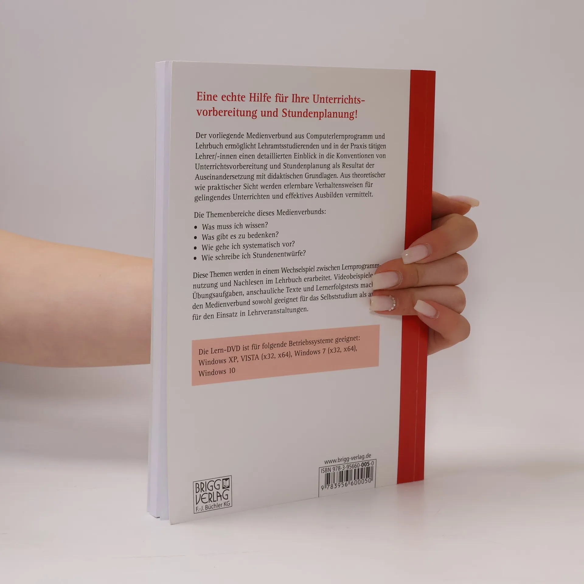 Der vorliegende Medienverbund aus Computerlernprogramm und Lehrbuch ermöglicht Lehramtsstudierenden und in der Praxis tätigen Lehrer/-innen einen detaillierten Einblick in die Konventionen von Unterrichtsvorbereitung und Stundenplanung als Resultat der Auseinandersetzung mit didaktischen Grundlagen. Die Themenbereiche dieses Medienverbunds: Was muss ich wissen? Was gibt es zu bedenken? Wie gehe ich systematisch vor? Wie schreibe ich Stundenentwürfe Diese Themen werden in einem Wechselspiel zwischen Lernprogrammbearbeitung und Nachlesen im Lehrbuch erarbeitet. Videobeispiele, Übungsaufgaben, anschauliche Texte und Lernerfolgstests machen den Medienverbund sowohl geeignet für das Selbststudium als auch für den Einsatz in Lehrveranstaltungen.