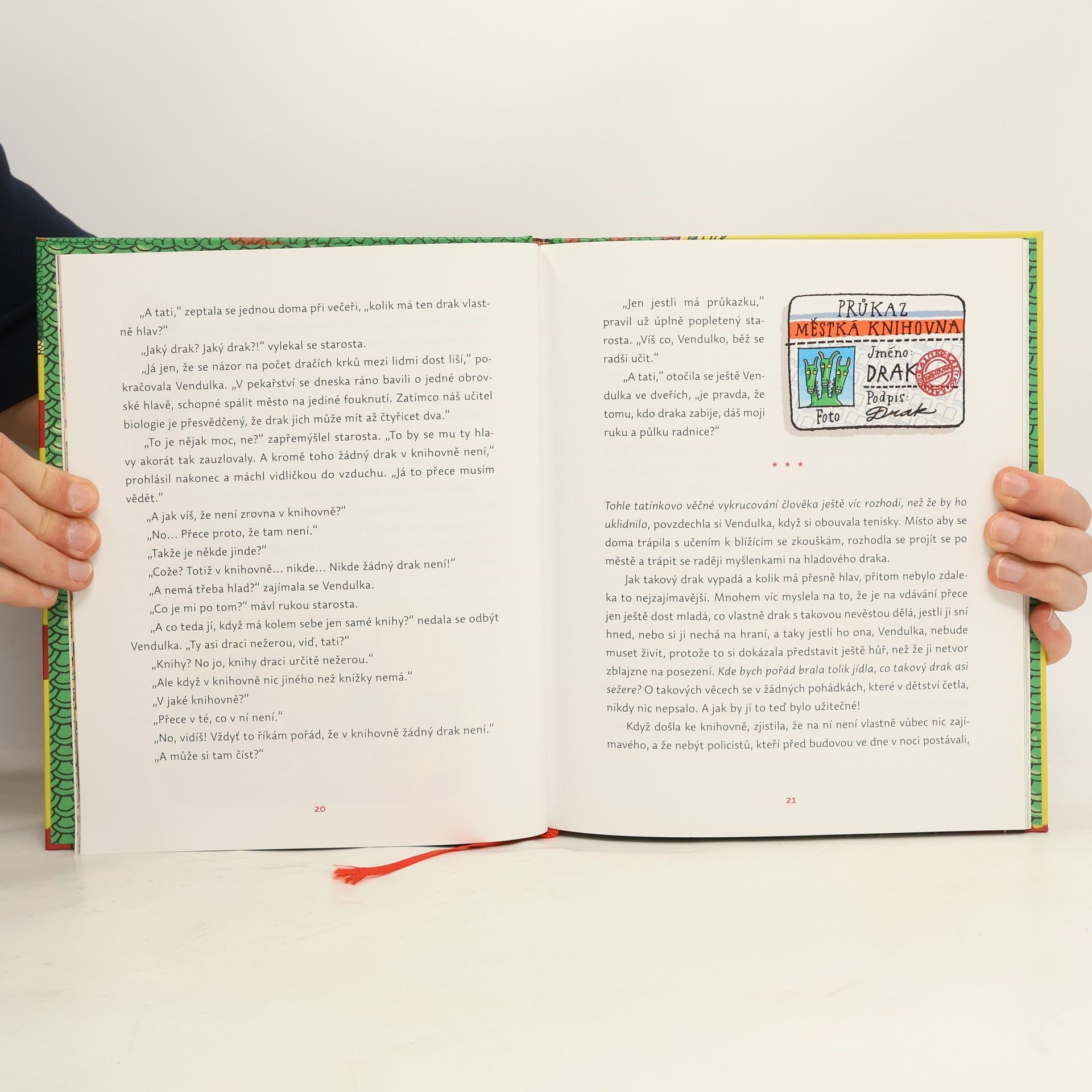 Když se starostova dcera Vendulka dozví, že v městské knihovně se usídlila lítá saň, nedá jí to a rozhodne se podívat se na ni zblízka. Z dobrodružné výpravy do knihovny si odnese domů nejen nezapomenutelné zážitky, ale i právě vylíhlého dráčka, který nestihl odletět s maminkou. Začne mu říkat Ferdo, cvičit ho jako psa a všude ho vodit s sebou. Jenže i draci mají pubertu a ta v nich probouzí pravé dračí pudy a schopnosti, včetně chrlení ohně. Takže když Ferda doroste do mládežnického věku, přestane být roztomilým domácím mazlíčkem. A začne mela! Ještě že tu jsou Vendulčini spolužáci, vychloubačný Mirek a záhadný Gracián… Jak tohle dopadne...? První vydání.