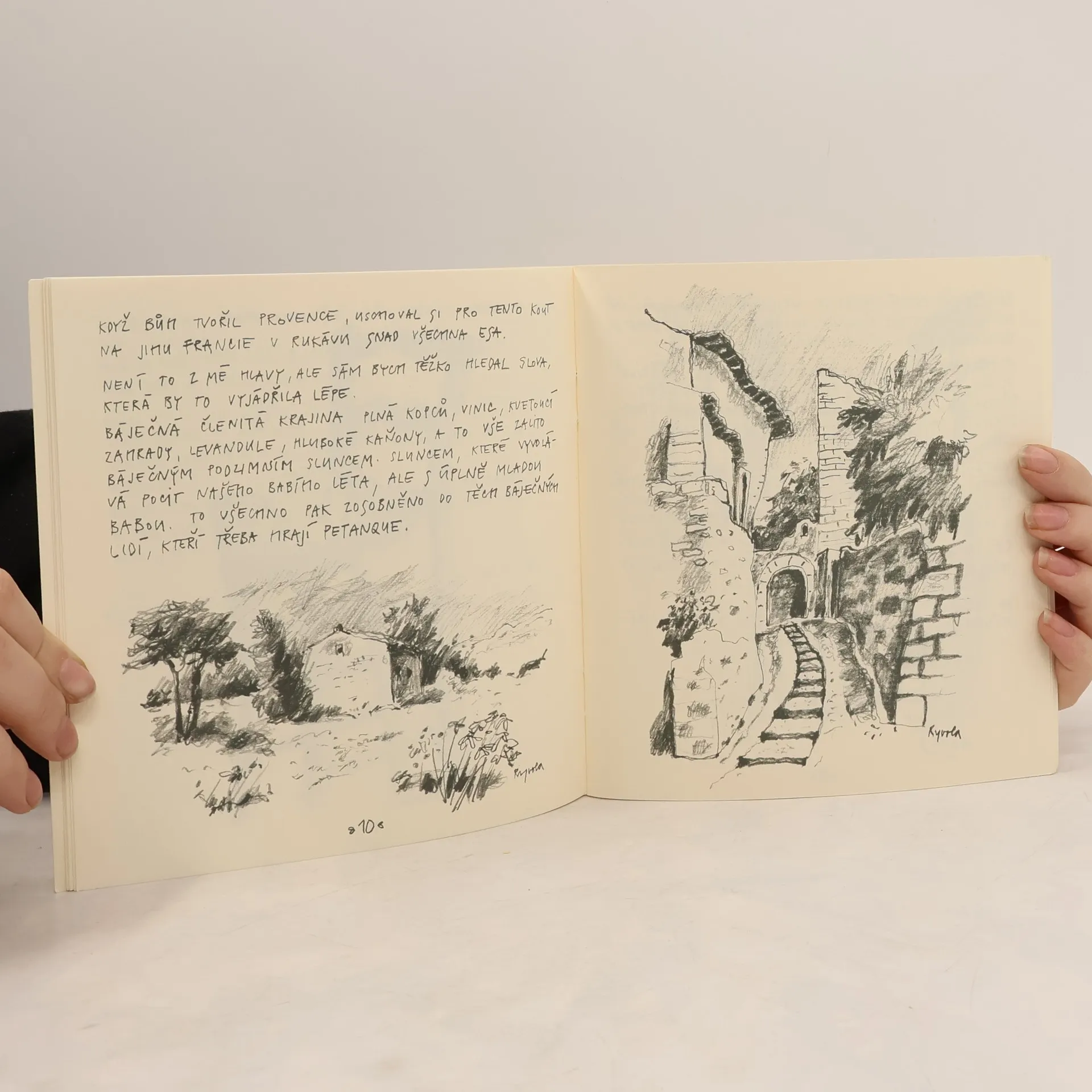 Listy z Provence patří již drahnou dobu mezi knihy, ke kterým se čtenář rád vrací. Chytré a moudré postřehy zaznamenal jejich autor Miroslav Horníček jazykem tak kultivovaným, že "se to dá číst i dnes". Humor, plný hravosti a mužné pošetilosti, brilantních formulací, a zejména pak člověčiny, přivedl J. Ryvolu několikrát do Horníčkovy blízkosti. A pravděpodobně někde zde se zrodila i jeho touha poznat Provence. Zatímco Horníček nechal své vyprávění ilustrovat malířem Vondrou, malíř Ryvola doprovodil své kresby tužkou vlastními texty. Ono by to ani jinak nešlo - výpověď je natolik osobní, že by to za něj stejně nikdo udělat nemohl. Přesto, že jsem tam s ním nebyl, dovedu si živě představit, jak se sadou pečlivě ručně ořezaných tužek značky Faber vášnivě řádí ve skicáku a ztrácí pojem o čase a lidech náhodně kolem jdoucích i blízkých. Poté, co několik přátel vidělo kresby a prolistovalo poznámky, rozhodl se zpřístupnit je širší veřejnosti. Snad i na vás dýchne hřejivé slunko babího léta a uvidíte nezaměnitelné okrové tóny domů schovaných pod červenými čapkami střech, ucítíte vůni levandule i zrajících hroznů a zatoužíte usednout na některou ze židlí Paula Cézanna. Pokud jste ještě v Provence nebyli, zajeďte tam. Budete se tam, stejně jako J. Ryvola, cítit jako doma.