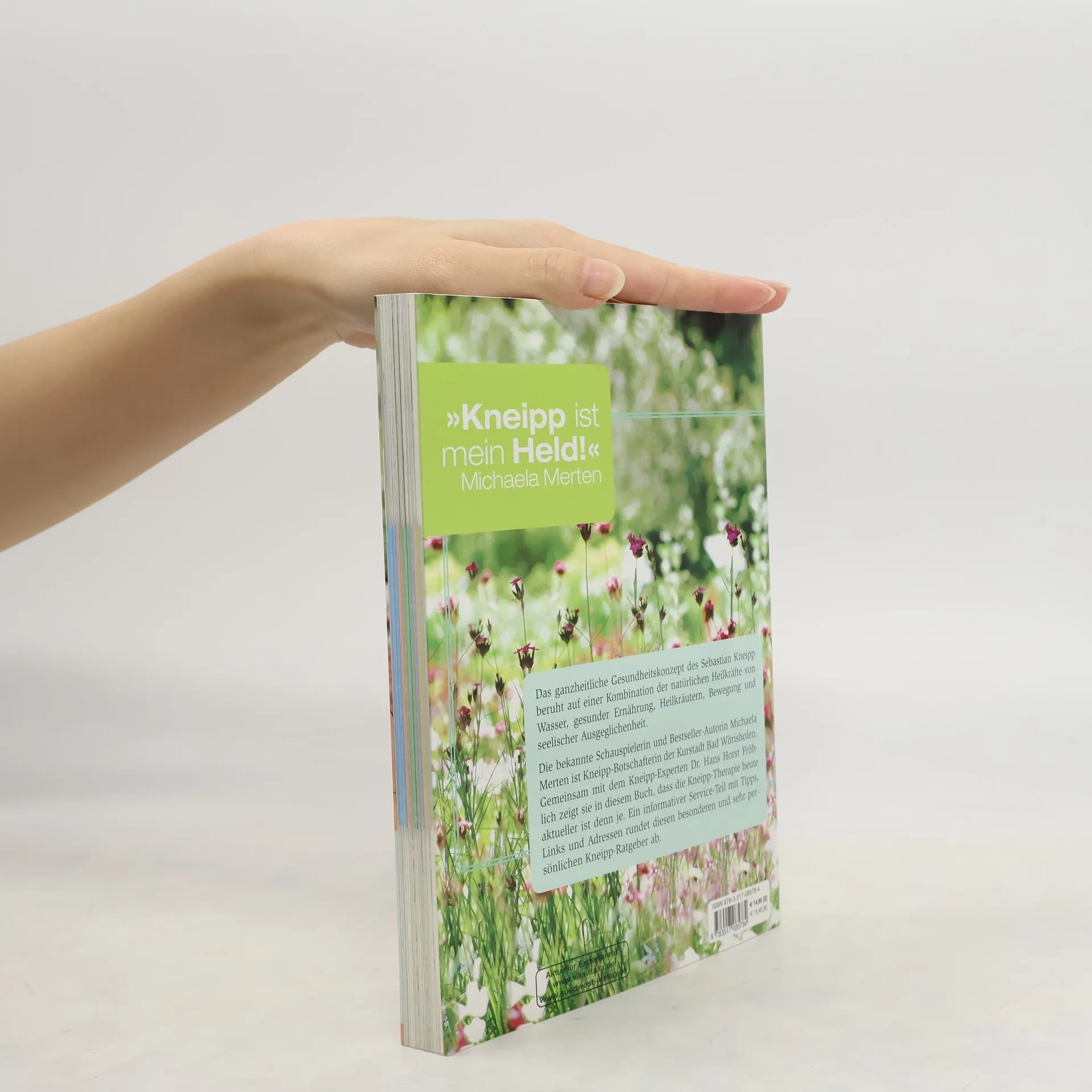 Michaela Mertens persönliche Quelle für mehr Lebensharmonie Alles, was wir für unsere Gesundheit brauchen, finden wir reichlich in der Natur. Diese Erkenntnis hat schon Pfarrer Sebastian Kneipp vor über 150 Jahren zu den fünf Elementen seines ganzheitlichen Gesundheitskonzeptes geführt: Eine Kombination der natürlichen Heilkräfte von Wasser, gesunder Ernährung, Heilkräutern, Bewegung und seelischer Ausgeglichenheit. Sein Naturheilverfahren entwickelte der Pfarrer im renommierten Kurort Bad Wörishofen, wo alles geboten wird, was beim Stressabbau hilft. Im März 2009 wurde die bekannte Schauspielerin und Bestseller-Autorin Michaela Merten zur Kneipp-Botschafterin der Kurstadt Bad Wörishofen ernannt. Gemeinsam mit dem Kneipp-Spezialist Dr. Hans-Horst Fröhlich erläutert sie in diesem reich bebilderten Ratgeber ihre persönlichen Favoriten der Kneipp-Therapie, in der die Schauspielerin die ideale universelle Naturheilmaßnahme für Lebensharmonie und Gesundheitsprävention sieht. Ein informativer Serviceteil mit Tipps, Links und Adressen rundet diesen besonderen und sehr persönlichen Kneipp-Ratgeber ab.