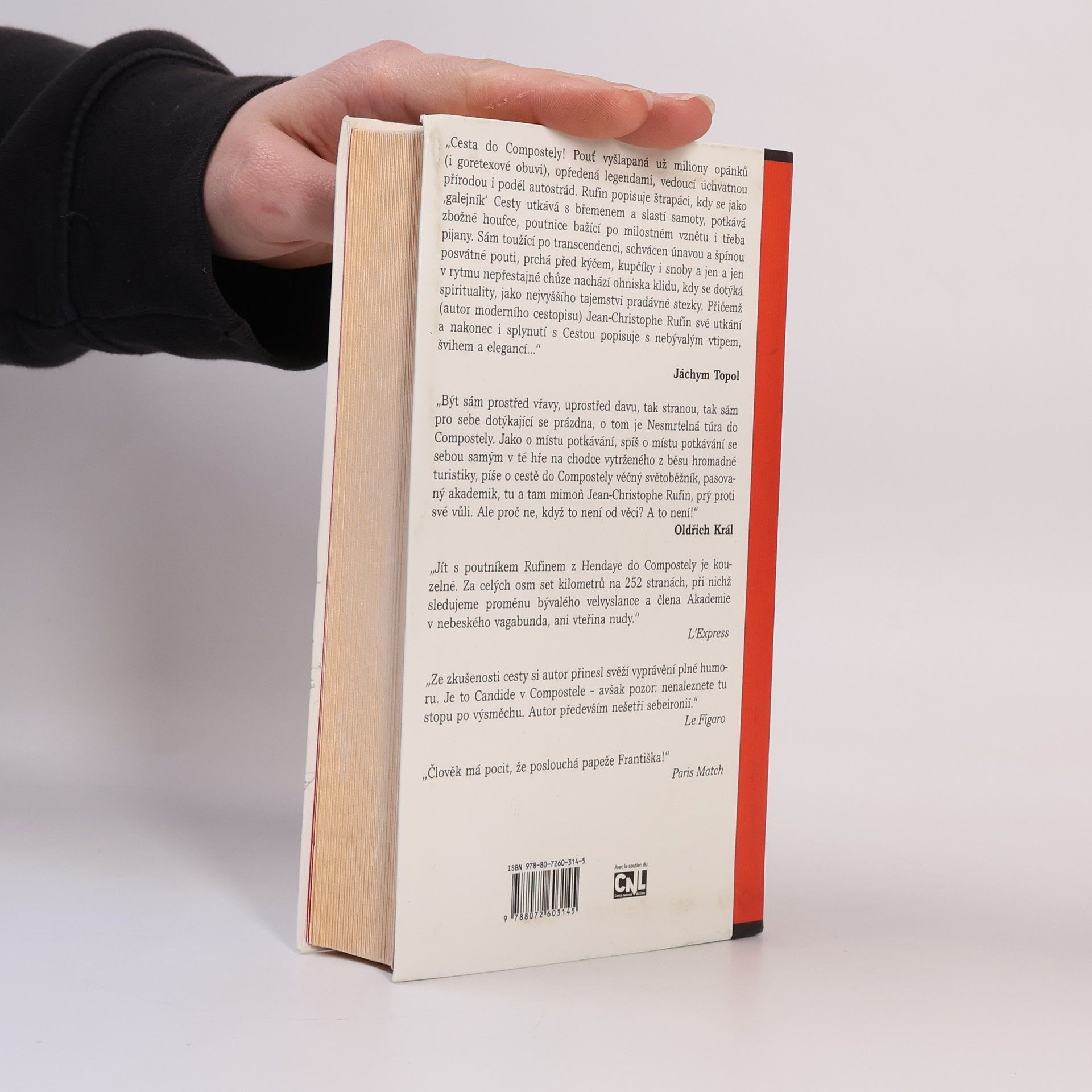 Cesta do Compostely! Pouť vyšlapaná už milióny opánků (i goretexové obuvi), opředená legendami, vedoucí úchvatnou přírodou i podél autostrád. Rufin popisuje štrapáci, kdy se jako „galejník“ Cesty utkává s břemenem a slastí samoty, potkává zbožné houfce, poutnice bažící po milostném vznětu i třeba pijany. Sám toužící po transcedenci, schvácen únavou a špínou posvátné pouti, prchá před kýčem, (kupčíky) i snoby a jen a jen v rytmu nepřestajné chůze nachází ohniska klidu, kdy se dotýká spirituality, jako nejvyššího tajemství pradávné stezky. Přičemž (autor moderního cestopisu) Jean Christophe Rufin své utkání a nakonec i splynutí s Cestou popisuje s nebývalým vtipem, švihem a elegancí …