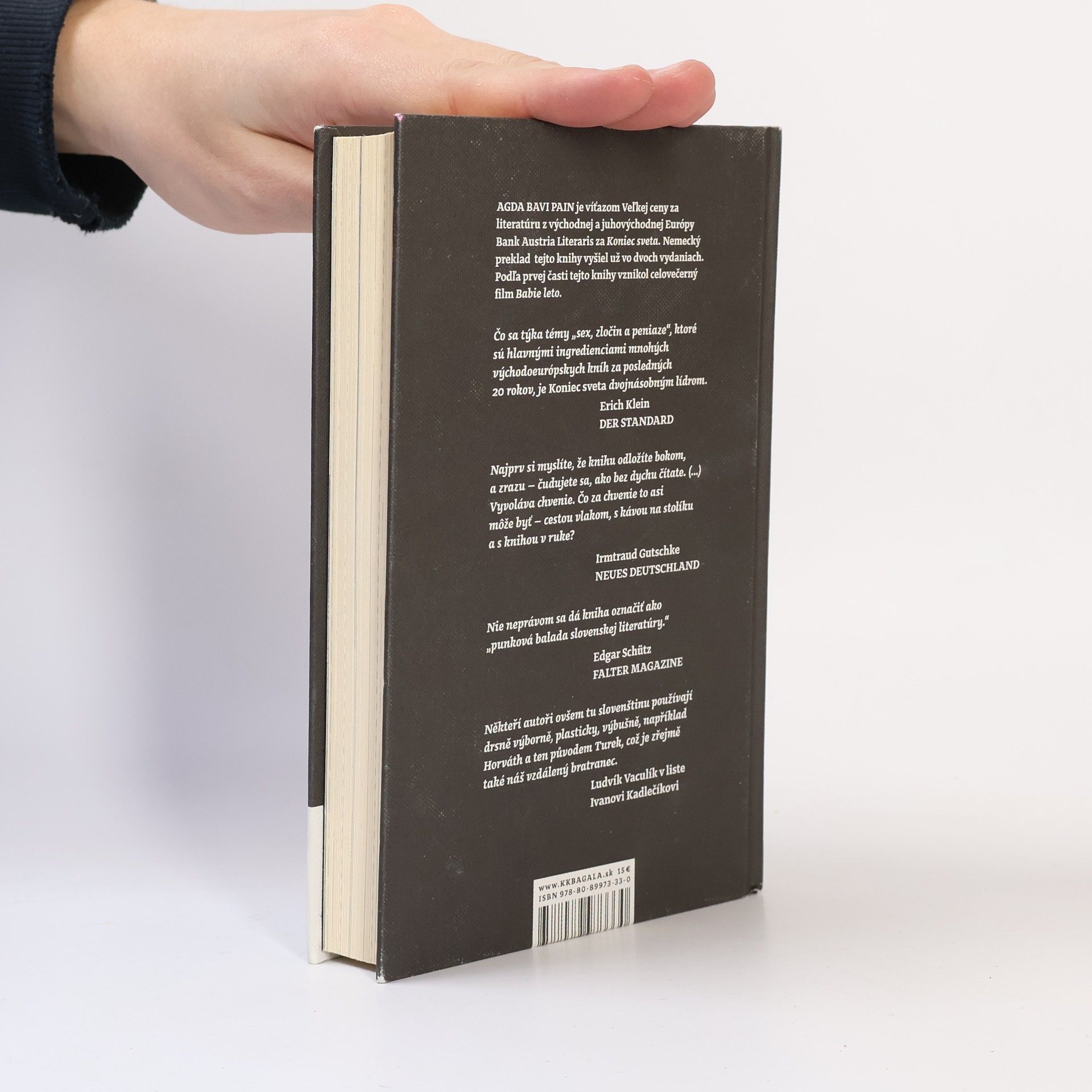 Štrnásť vrážd a ani jeden pohreb! Nadupaná a strhujúca akčná story z košického podsvetia získala veľkú medzinárodnú cenu Bank Austria Literaris a pod názvom „Am Ende Der Welt“ vyšla v dvoch vydaniach v nemeckom preklade. Na motívy knihy vznikla prvá slovenská gangsterka „Babie leto“ (réžia Gejza Dezorz). Román vychádza v novom vydaní s ilustráciami Miloša Gašparca.