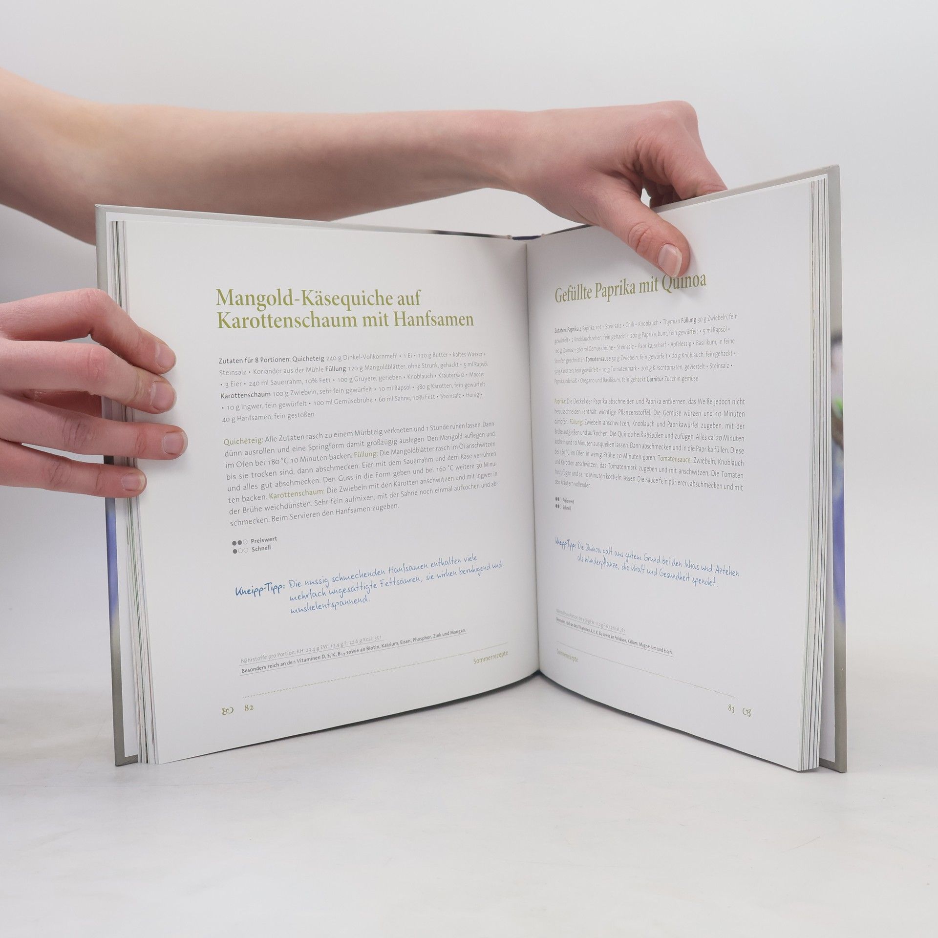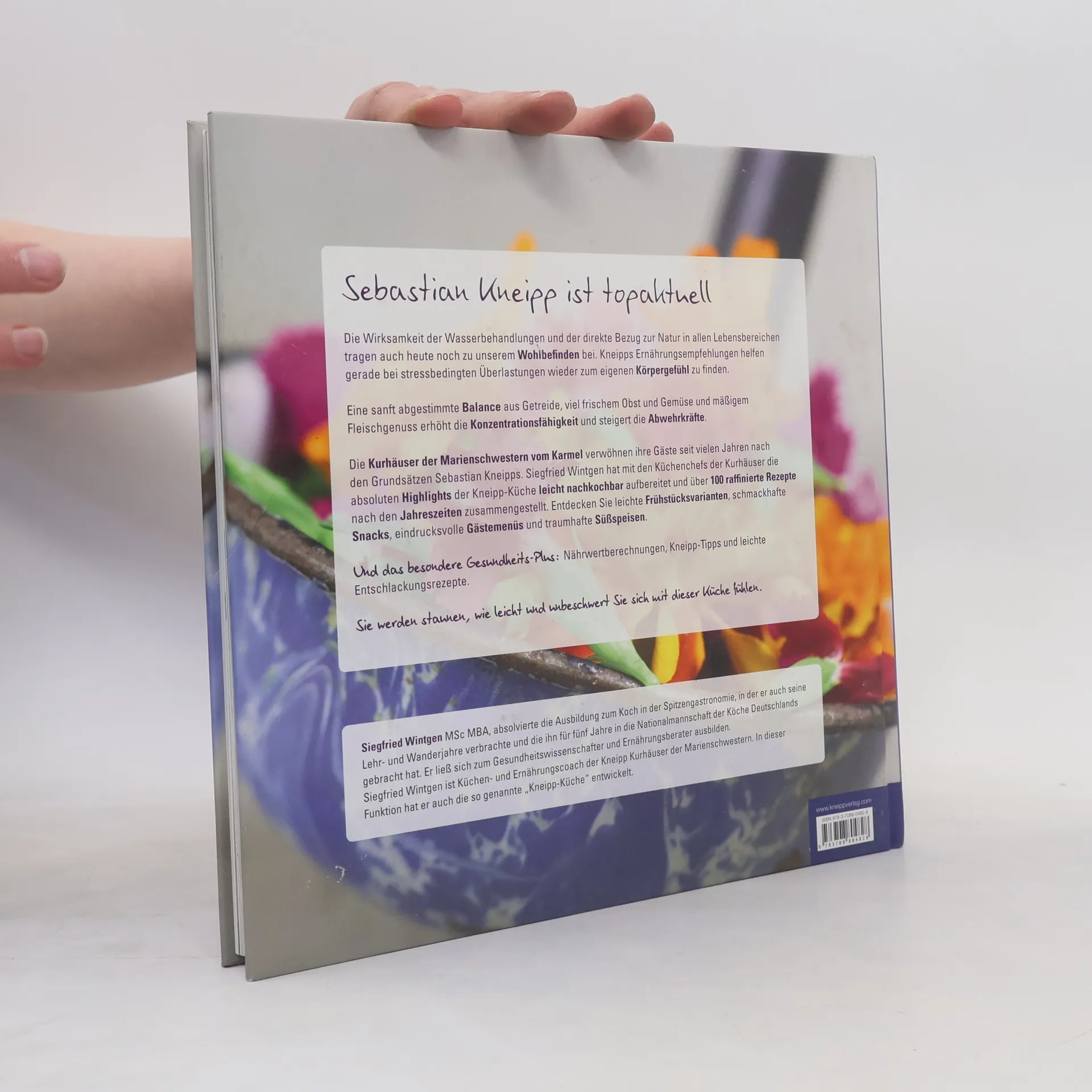 Gesund soll unsere Ernährung sein, zubereitet aus frischen, regionalen und der Jahreszeit entsprechenden Zutaten. Was heutzutage voll im Trend liegt, predigte Sebastian Kneipp bereits vor über 100 Jahren. Die lebendige Umsetzung der Kneippschen (Ernährungs)Lehre wird in den Kurhäusern der Marienschwestern vom Karmel mit dem nötigen Zeitgeist umgesetzt. Siegfried Wintgen hat mit den Küchenchefs der Kurhäuser die absoluten Highlights der Kneipp-Küche modern und leicht nachkochbar aufbereitet. Vom Frühstück über die gesunde Jause bis zum Mittag- und Abendessen wird eine breite Palette hervorragender und gesunder Rezeptideen farbenfroh gezeigt.