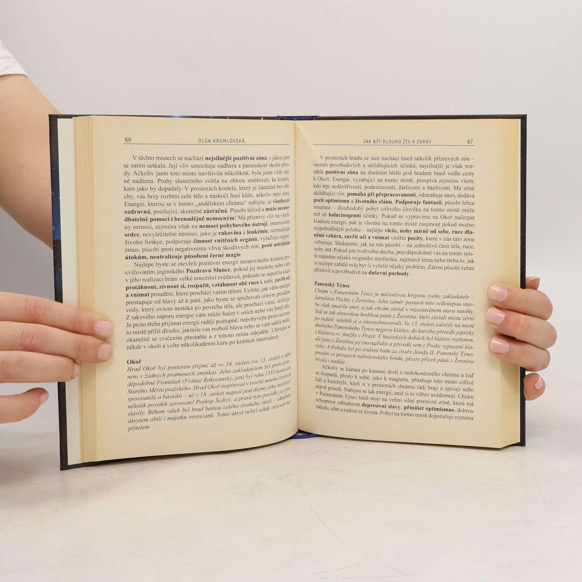 Známá astroložka se ve své nové knize zaměřuje na zdravý životní styl a na metody používané k posílení odolnosti lidského organismus vůči nemocem všeho druhu. Využívá znalosti jógy, léčebných praktik našich předků, přináší rady, jak neduhy léčit, ale také jak nemocem předcházet a zvyšovat celkovou odolnost těla i duše. Uvádí, jaké základní zdravotní problémy nejčastěji trápí jednotlivá astrologická znamení, uplatňuje znalosti astromedicíny a radí, jak mohou pomoci také aromaterapie, arteterapie, léčba pomocí kamenů, barev a poznatky feng shuej. Čtenáři se také dozvědí, jak čerpat energii v přírodě a z energeticky silných míst. Kniha Olgy Krumlovské nás zkrátka nabije energií, aktivitou a napomůže k řešení či úplnému vyléčení zdravotních problémů.