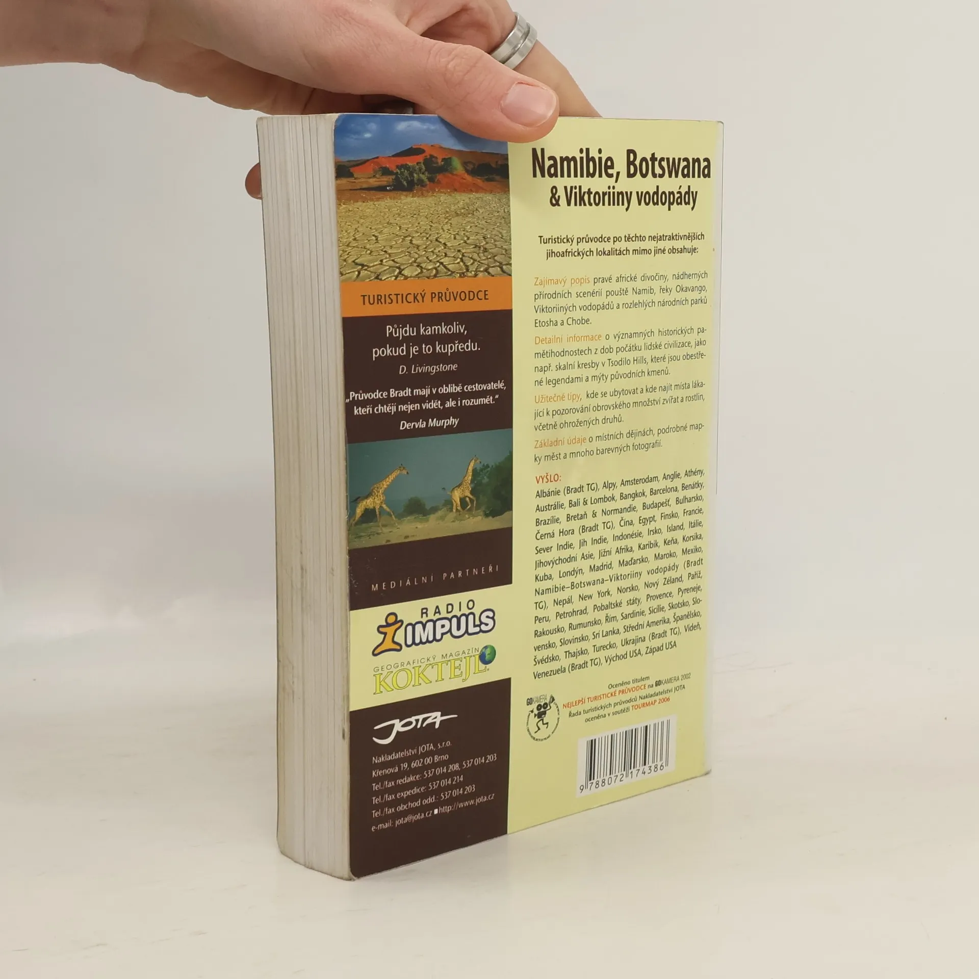 Průvodce s fotografiemi Marcela Nekvindy, Rudolfa Švaříčka a Martina Tomčíka. V turistickém průvodci po těchto nejatraktivnějších jihoafrických lokalitách mimo jiné najdete: zajímavý popis pravé africké divočiny, nádherných přírodních scenérií pouště Namib, řeky Okavango, Viktoriiných vodopádů a rozlehlých národních parků Etosha a Chobe, detailní informace o významných historických pamětihodnostech z dob počátku lidské civilizace, jako např. skalní kresby v Tsodilo Hils, které jsou obestřené legendami a mýty původních kmenů, užitečné tipy, kde se ubytovat a kde najít místa lákající k pozorování obrovského množství zvířat a rostlin, včetně ohrožených druhů. Nechybí ani základní údaje o místních dějinách, podrobné mapky měst a mnoho barevných fotografií. 1. vydání.