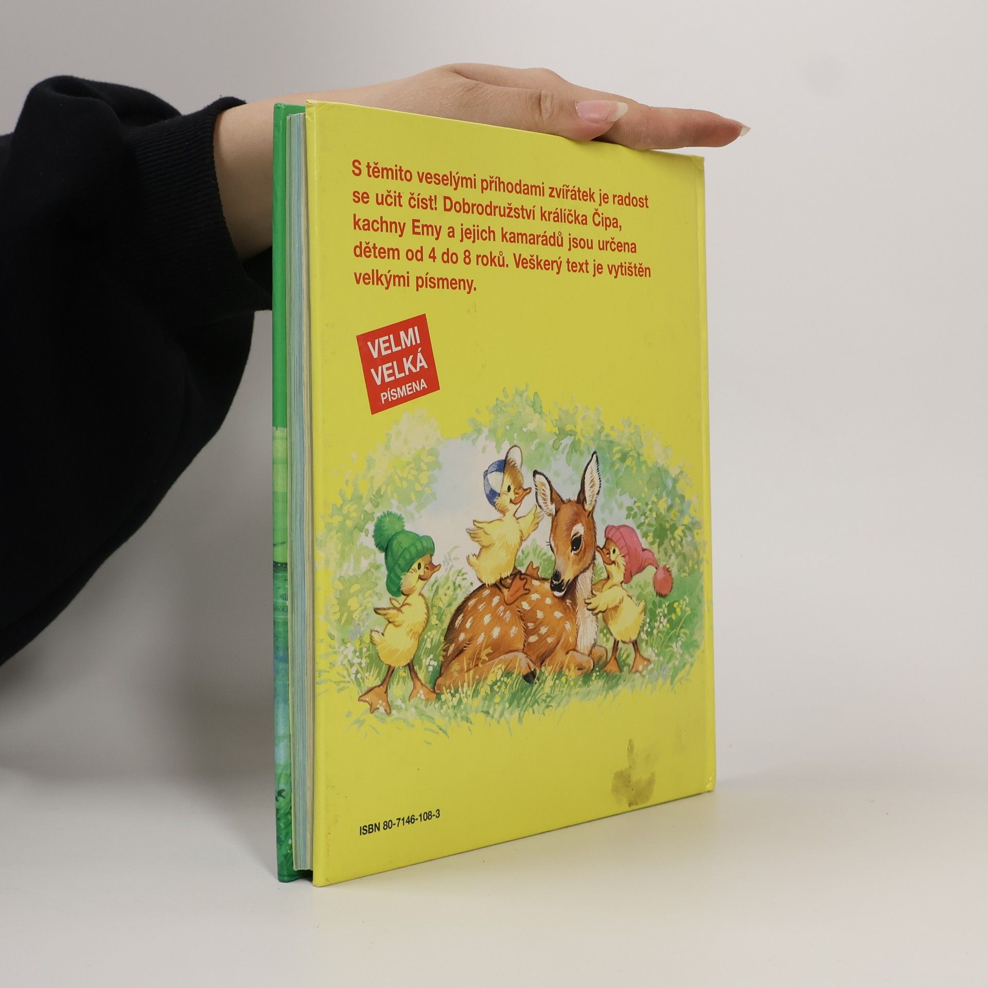 Veselé příhody zvířátek jsou v této knížce vyprávěny velmi jednoduše a obsahují mnohá cvičení na opakování slov. Velká písmena usnadňují četbu dětem od čtyř do osmi roků. Na konci každého vyprávění jsou zopakována nová slova pro povzbuzení pozorovacích schopností a paměti. Naši nejmladší čtenáři a čtenářky budou lehce srozumitelnými příhodami kachny Emy, pejska Honzíka, králíčka Čipa a medvídka Bédi jistě nadšeni.