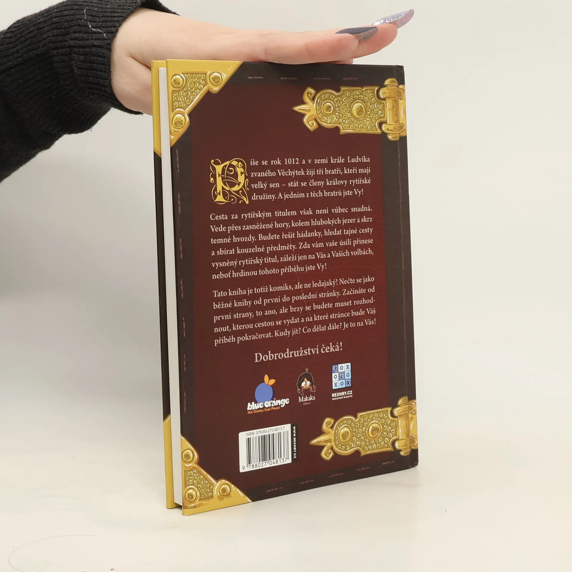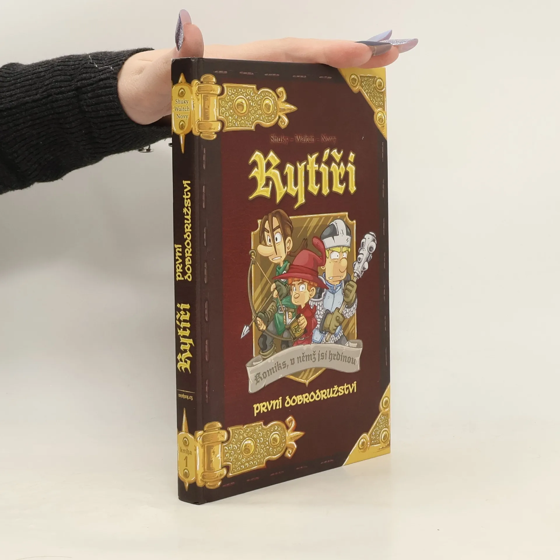 Rytíři: První dobrodružství je kniha z řady Komiks, v němž jsi hrdinou, v níž se originálně spojují dva oblíbené prvky: komiks s gamebookem, tedy s knihou, v níž vaše rozhodnutí určují další pokračování děje. V této komiksové knize se stanete jedním ze tří mladých sedláckých bratrů, kteří se rozhodli, že se stanou rytíři. Aby toho dosáhli, musí ale obstát v rytířské zkoušce. Budete s nimi prozkoumávat neznámé končiny, bojovat s lupiči, hledat poklady a získávat zbraně a magické předměty. Je jen na vás, kam se se svým hrdinou vydáte. Jeho osud je zcela ve vašich rukou. Svou obtížností, příběhem i zpracováním je hra obzvláště vhodná pro mladší hráče od desíti let.