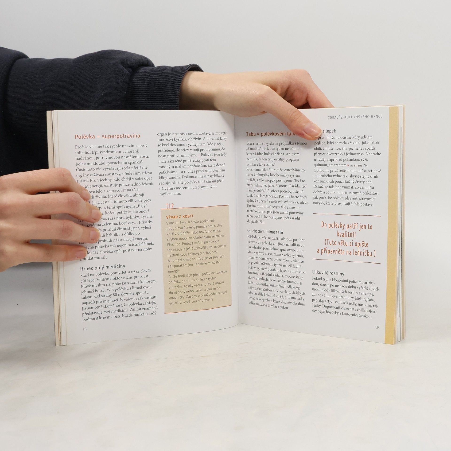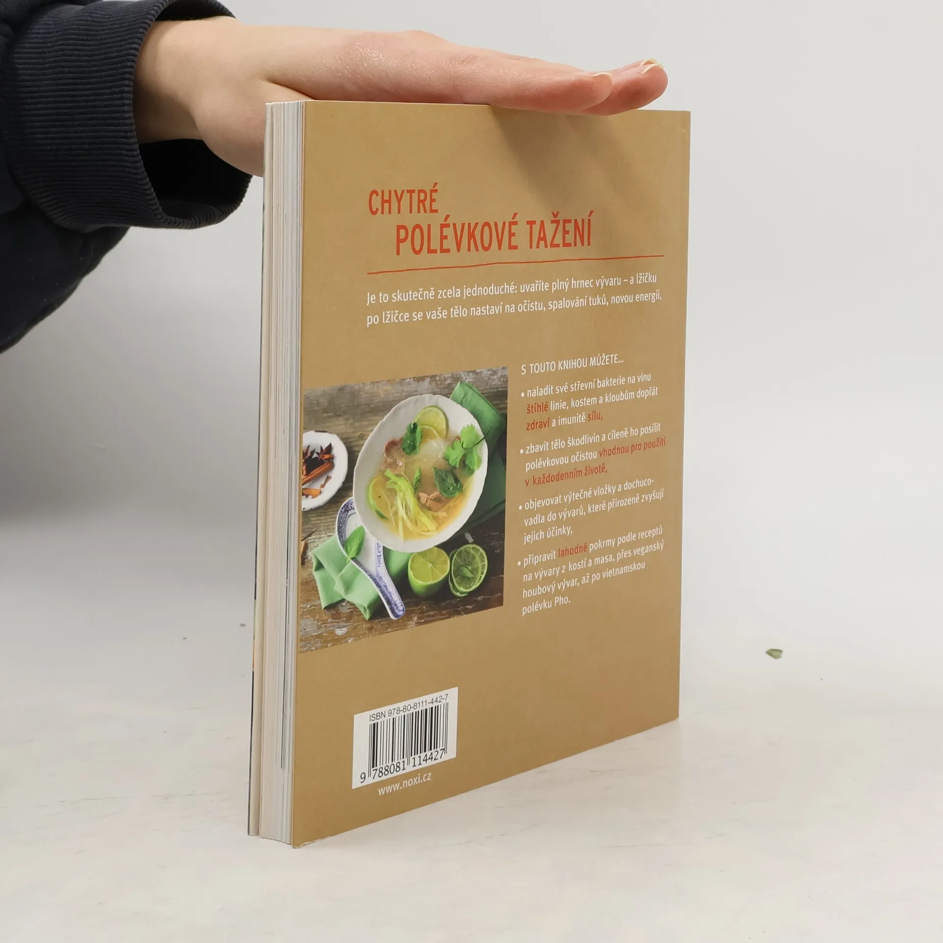Léčivé polévky - poctivé vývary pro více energie, méně kil a zdravá střeva. Čtyřtýdenní detoxikační program. Je to skutečně velmi jednoduché - uvaříte velký hrnec vývaru a vaše tělo lžíci za lžící přepne na detoxikaci, spalování tuků a novou energii. S touto knihou MŮŽETE ... • nastavit střevní bakterie na zeštíhlování, kosti a klouby na ozdravení a aktivovat imunitní buňky • pomocí polévkového detoxikačního programu vhodného pro každý den zbavit tělo jedů a cílevědomě jej posílit • objevit chutné přídavky do vývarů, které působí jako přirozená vzpruha • vykouzlit lahodné pokrmy od vývaru z kostí, veganského houbového vývaru až po vietnamskou polévku.