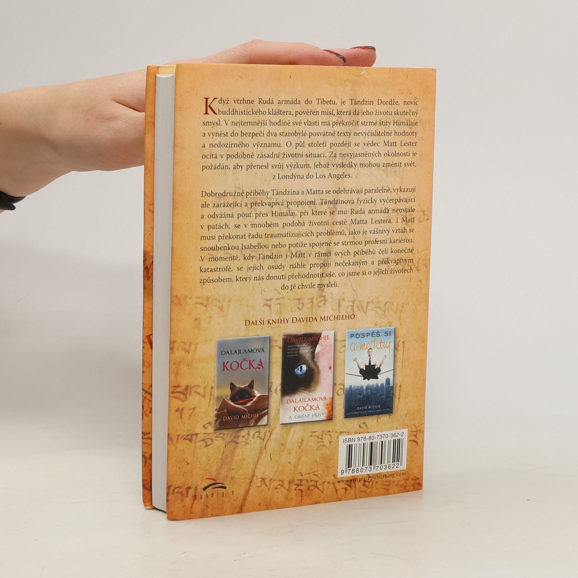 Když vtrhne Rudá armáda do Tibetu, je Tändzin Dordže, novic buddhistického kláštera, pověřen misí, která dá jeho životu skutečný smysl. V nejtemnější hodině své vlasti má překročit strmé štíty Himálají a vynést do bezpečí dva starobylé posvátné texty nevyčíslitelné hodnoty a nedozírného významu. O půl století později se vědec Matt Lester ocitá v podobně zásadní životní situaci. Za nevyjasněných okolností je požádán, aby přenesl svůj výzkum, jehož výsledky mohou změnit svět, z Londýna do Los Angeles. Dobrodružné příběhy Tändzina a Matta se odehrávají paralelně, vykazují ale zarážející a překvapivá propojení. Tändzinova fyzicky vyčerpávající a odvážná pouť přes Himálaje, při které je mu Rudá armáda neustále v patách, se v mnohém podobá životní cestě Matta Lestera. I Matt musí překonat řadu traumatizujících problémů, jako je vášnivý vztah se snoubenkou Isabellou nebo potíže spojené se strmou profesní kariérou. V momentě, kdy Tändzin i Matt v rámci svých příběhů čelí konečné katastrofě, se jejich osudy náhle propojí nečekaným a překvapivým způsobem, který nás donutí přehodnotit vše, co jsme si o jejich životech do té chvíle mysleli.