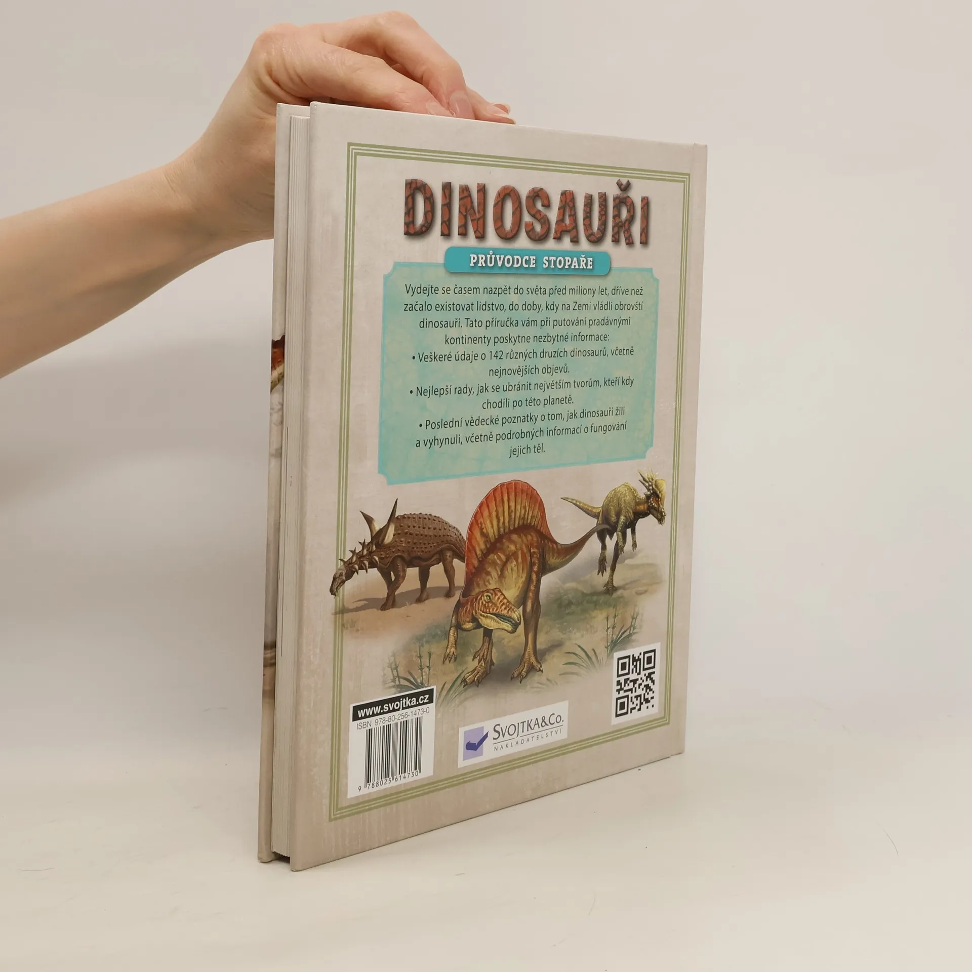 Vydejte se časem nazpět do světa před miliony let, dříve než začalo existovat lidstvo, do doby, kdy naši planetu obývali obrovští dinosauři. Tato příručka vám při putování pradávnými kontinenty poskytne nezbytné informace. Najdete v ní veškeré údaje o 142 různých druzích dinosaurů, včetně nejnovějších objevů, i poslední vědecké poznatky o tom, jak dinosauři žili a vyhynuli, včetně podrobných informací o fungování jejich těl. Do dnešních dnů byly objeveny zkameněliny více než 1000 různých druhů dinosaurů, seznamte se s pomocí této knihy s některými z nich detailněji.