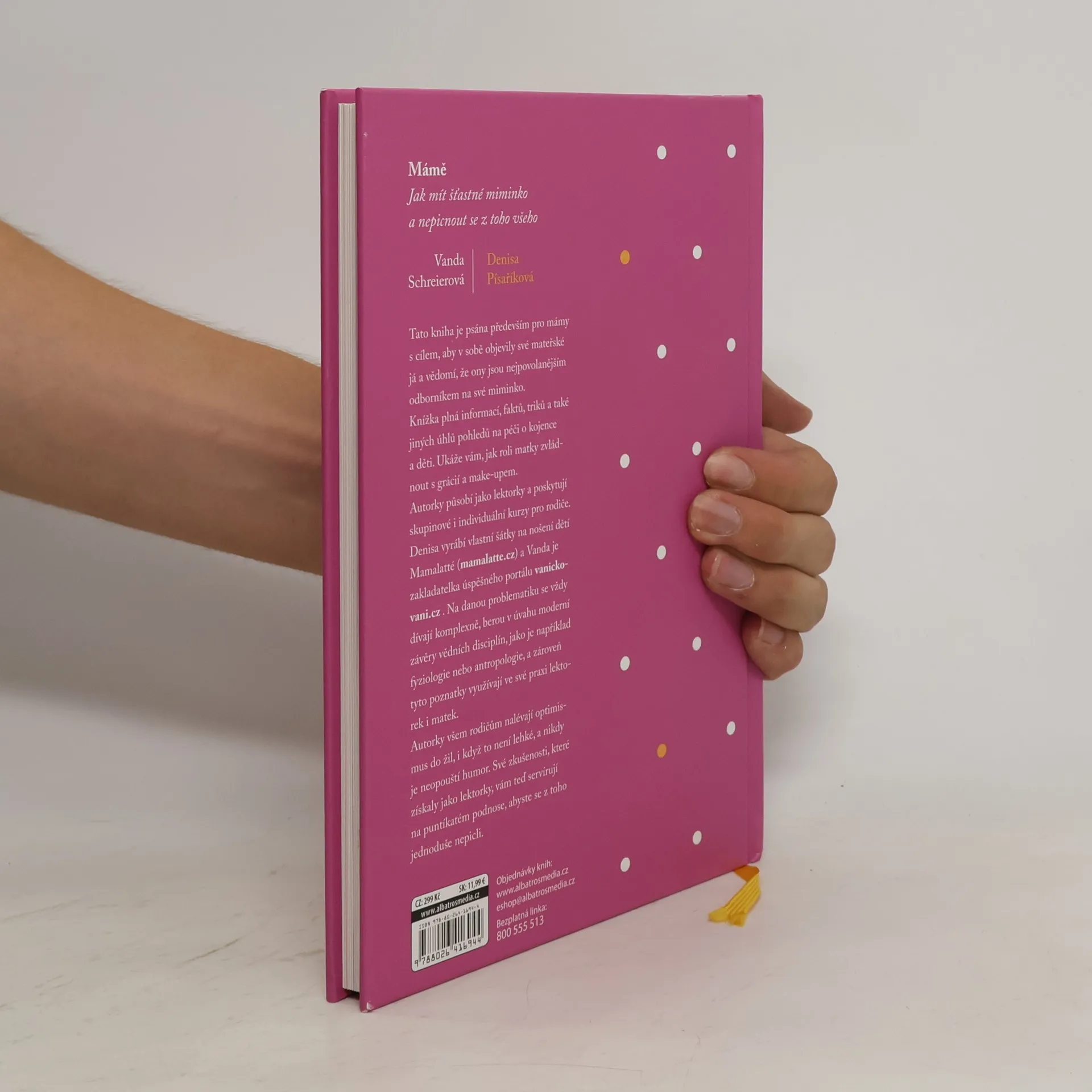Tato kniha je psána především pro mámy s cílem, aby v sobě objevily své mateřské já a vědomí, že ony jsou nejpovolanějším odborníkem na své miminko. Knížka plná informací, faktů, triků a také jiných úhlů pohledů na péči o kojence a děti. Ukáže vám, jak roli matky zvládnout s grácií a make-upem. Autorky působí jako lektorky a poskytují skupinové i individuální kurzy pro rodiče. Denisa vyrábí vlastní šátky na nošení dětí Mamalatté (mamalatte.cz, https://www.facebook.com/mamalattecz/?fref=ts) a Vanda je zakladatelka úspěšného portálu vanickovani.cz (také https://www.facebook.com/vanickovani/?fref=ts). Na danou problematiku se vždy dívají komplexně, berou v úvahu moderní závěry vědních disciplín, jako je například fyziologie nebo antropologie, a zároveň tyto poznatky využívají ve své praxi lektorek i matek. Autorky všem rodičům nalévají optimismus do žil, i když to není lehké, a nikdy je neopouští humor. Své zkušenosti, které získaly jako lektorky, vám teď servírují na puntíkatém podnose, abyste se z toho jednoduše nepicli.