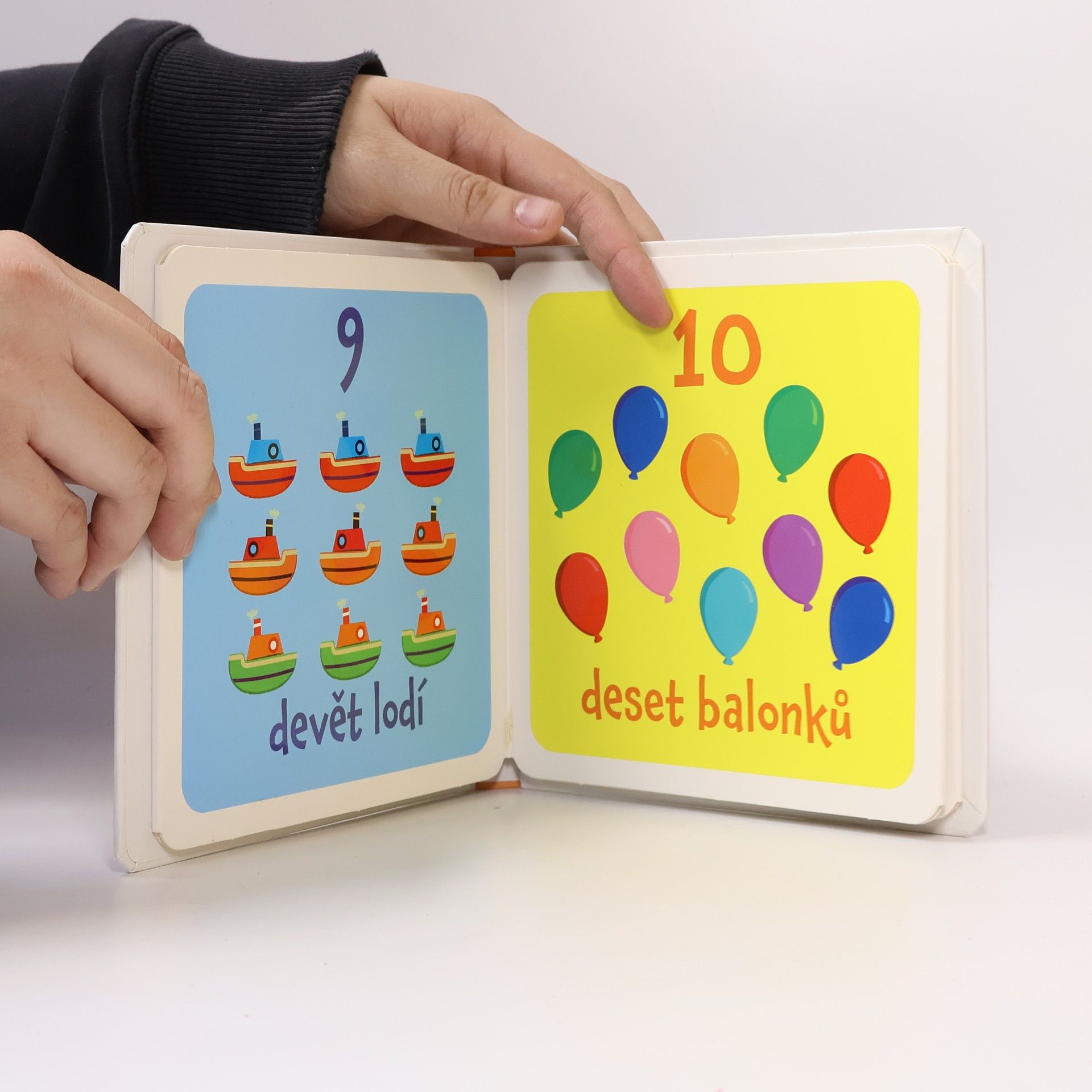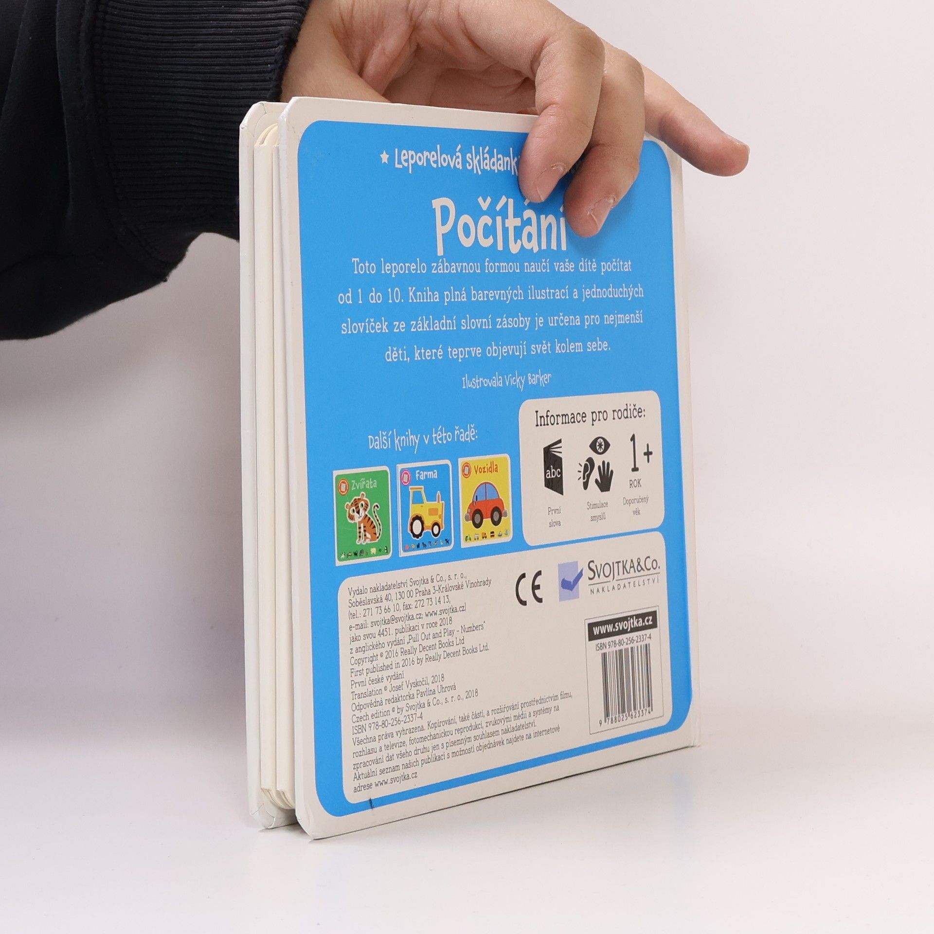 Toto malé leporelo je určeno přesně pro dětské ručky. Díky veselým a jednoduchým obrázkům se vaše dítě naučí základní slovíčka a čísla od jedné do deseti. Kolik čísel už znáš a do kolika umíš napočítat? Naučte své děťátko první slova a čísla a rozšiřte jeho základní slovní zásobu. Kniha obsahuje zrcátko, ve kterém děti uvidí samy sebe, a tak se také mohou pojmenovat. Kniha obsahuje zrcátko.