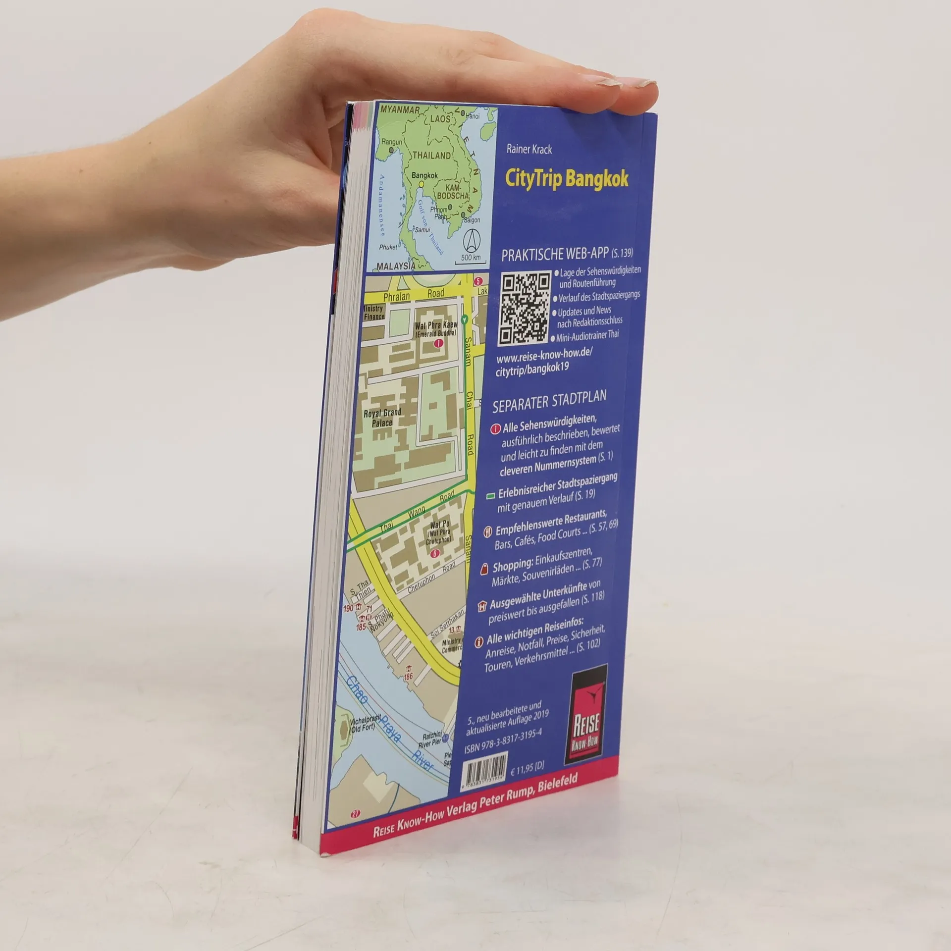 Dieser aktuelle Stadtführer ist der ideale Begleiter, um alle Seiten der thailändischen Hauptstadt selbstständig zu entdecken: - Die wichtigsten Sehenswürdigkeiten und Museen der Stadt sowie weniger bekannte Attraktionen und Viertel ausführlich vorgestellt und bewertet - Erstaunliche Architektur zwischen sakralen Tempelbauten, Überresten alter Befestigungsanlagen und dem modernen Gesicht aus Beton und Glas - Abwechslungsreicher Stadtspaziergang - Erlebnisvorschläge für einen Kurztrip - Ausflüge zur Insel Ko Kret und zum Freilichtmuseum Mueang Boraan - Shoppingtipps vom traditionellen Nachtmarkt bis zu den prächtigen Shoppingmalls - Die besten Restaurants und Straßenstände der Stadt und allerlei Wissenswertes über die thailändische Küche - Tipps für die Abend- und Nachtgestaltung: vom Jazzklub bis zum Transsexuellen-Kabarett - Bangkok zum Träumen und Entspannen: Klongfahrt mit dem Longtail-Boot, Erholung am Fluss oder Sonnenbaden im Lumpini Park - Ausgewählte Unterkünfte von preiswert bis ausgefallen - Alle praktischen Infos zu Anreise, Preisen, Stadtverkehr, Touren, Events, Hilfe im Notfall ... - Hintergrundartikel mit Tiefgang: Geschichte, Mentalität der Bewohner, Leben in der Stadt ... - Kleine Sprachhilfe Thai mit den wichtigsten Vokabeln für den Reisealltag - Faltplan zum Herausnehmen Dazu: kostenlose Web-App für Smartphone, Tablet und PC mit Stadtplan- und Satellitenansichten passend zum Text, Routenführung zu allen beschriebenen Sehenswürdigkeiten, Verlauf des Stadtspaziergangs, seitenbezogenen Updates nach Redaktionsschluss sowie einem Mini-Audiotrainer Thai ++++ CityTrip - die aktuellen Stadtführer von Reise Know-How, mit über 160 Städtezielen die weltweit umfangreichste Kollektion. Fundiert, übersichtlich, praktisch. REISE KNOW-HOW - Reiseführer für individuelle Reisen