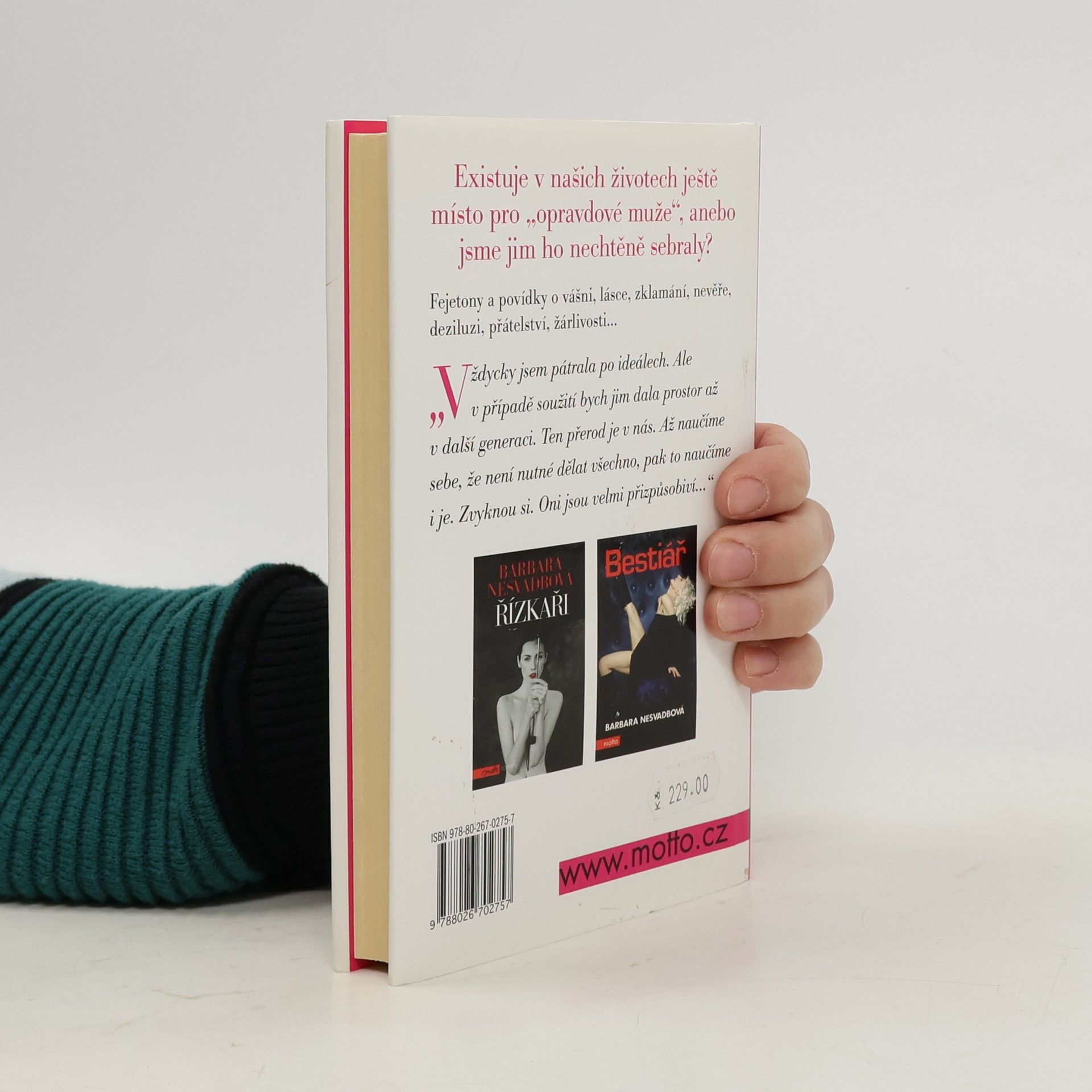 Existuje v našich životech ještě místo pro „opravdové muže“, a nebo jsme jim ho nechtěně sebraly? Fejetony a povídky Barbary Nesvadbové o vášni, lásce, zklamání, nevěře, deziluzi, zášti, přátelství i žárlivosti.